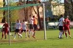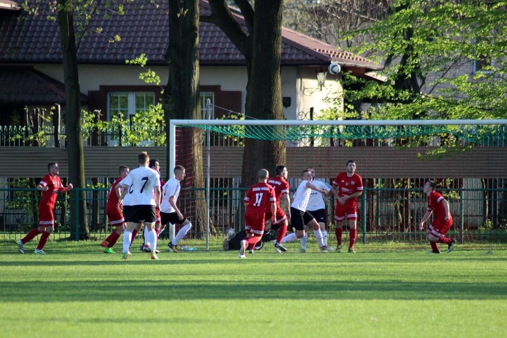 - 18.04.2019, Nisko: piłkarze Sokoła Nisko (w czerwonych koszulkach) wygrali 2-0 z Piastem Tuczempy w meczu zaległej kolejki rozgrywek 4 ligi podkarpackiej (fot. Radosław Kuśmierz)