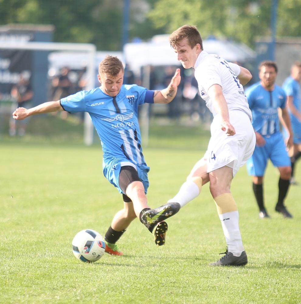 - 5.05.2018, Jarosław: Piłkarze JKS-u Jarosław (niebieskie stroje) wygrali 2-1 ze Stalą Rzeszów w meczu 3 ligi grupy IV i nie są już ostatnią drużyną w lidze (fot Patryk Górecki)
