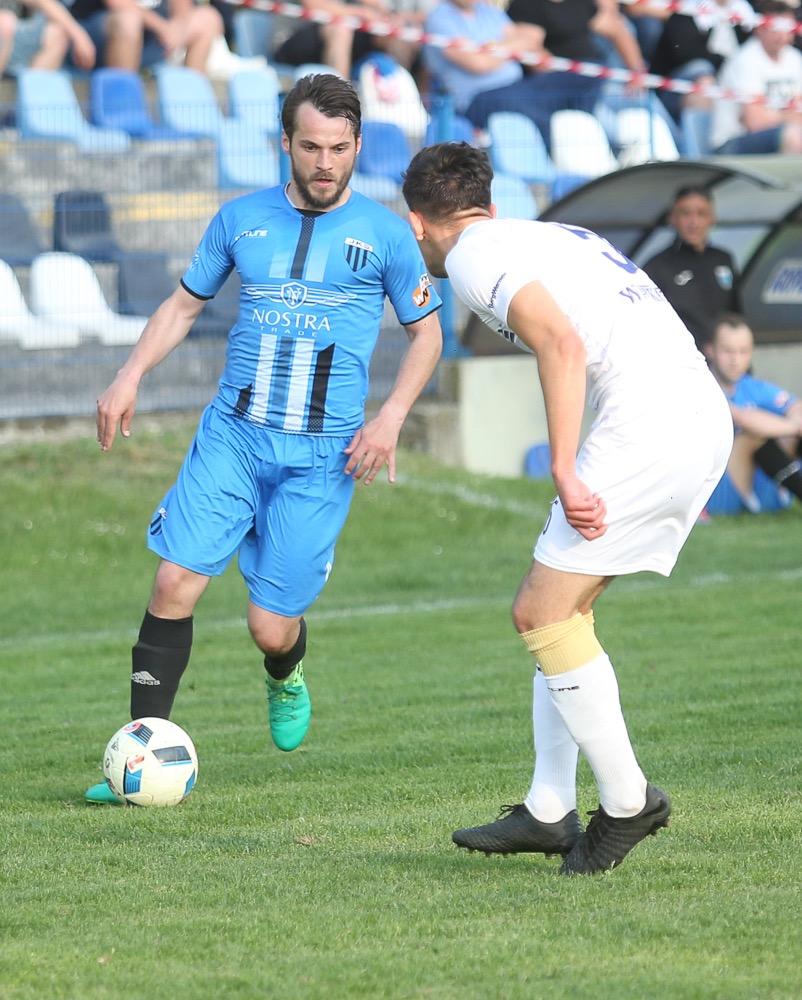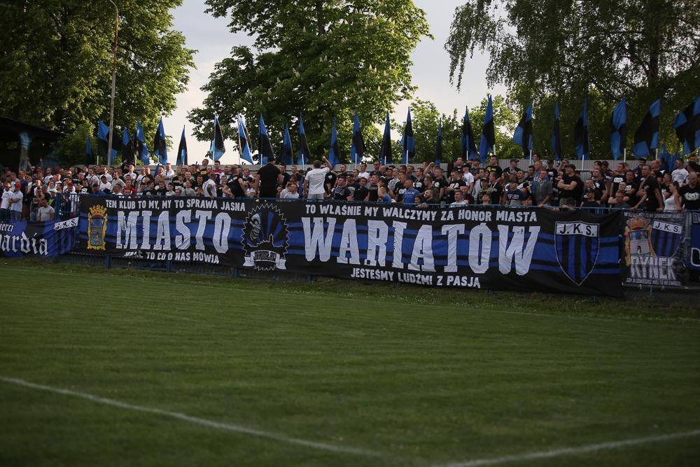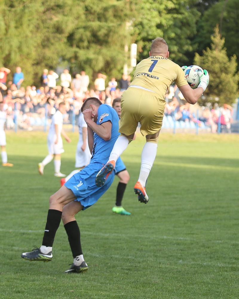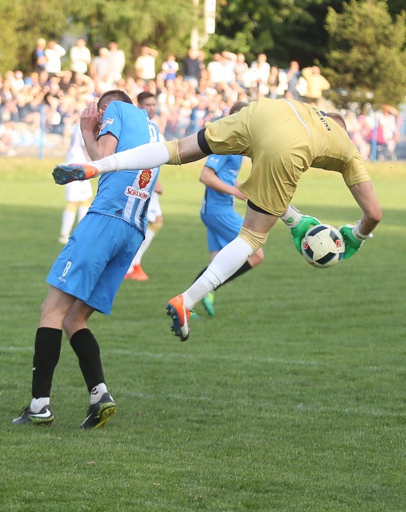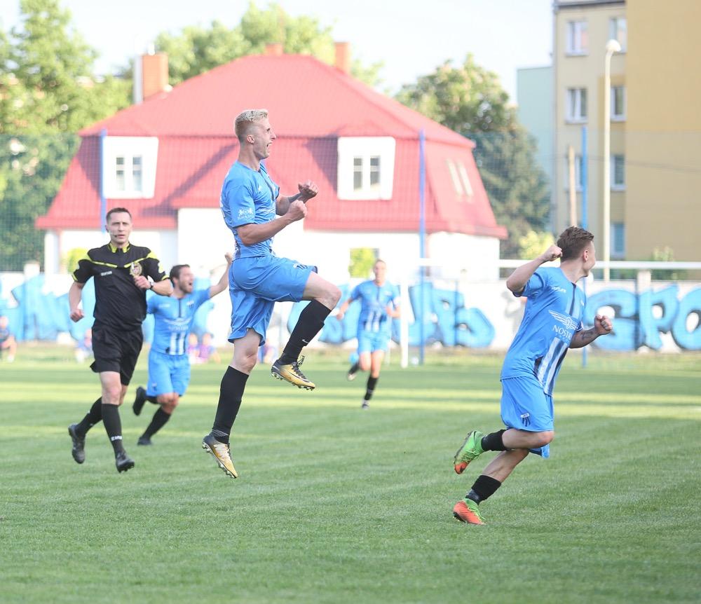 - 5.05.2018, Jarosław: Piłkarze JKS-u Jarosław (niebieskie stroje) wygrali 2-1 ze Stalą Rzeszów w meczu 3 ligi grupy IV i nie są już ostatnią drużyną w lidze (fot Patryk Górecki)