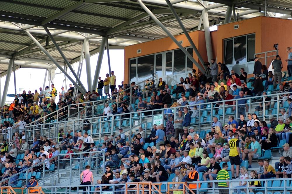 - 2 liga, Tarnobrzeg, 5.05.2018: Piłkarze Siarki Tarnobrzeg (żółto-czarne stroje) zremisowali 2-2 w Derbach Podkarpacia ze Stalą Stalowa Wola (fot. Radek Kuśmierz)