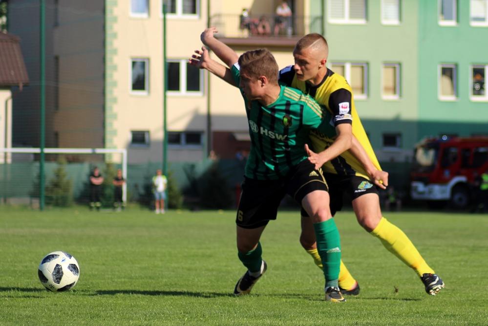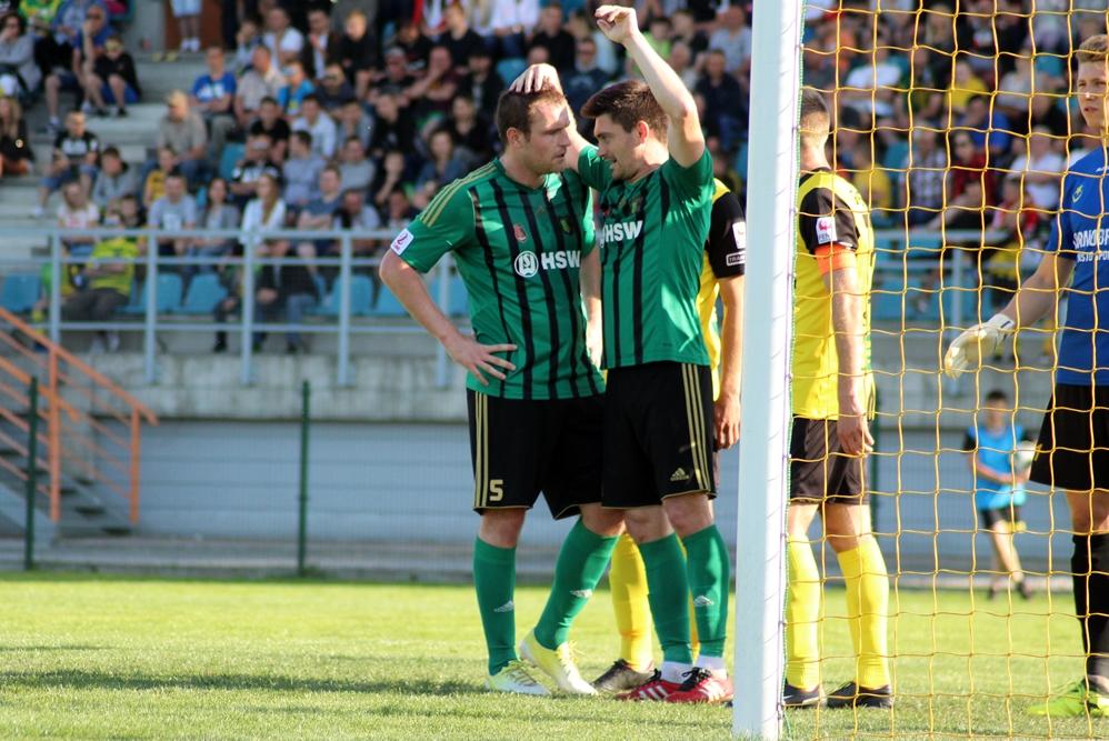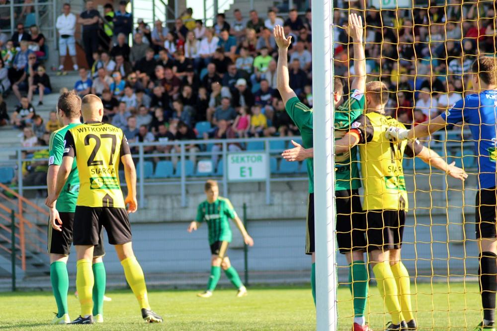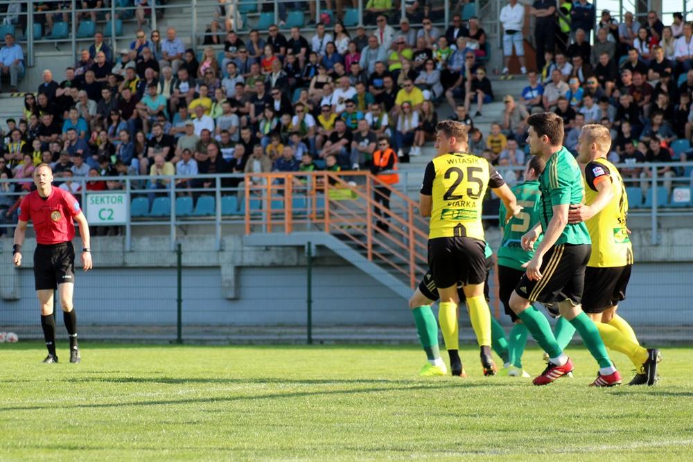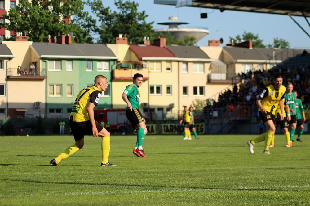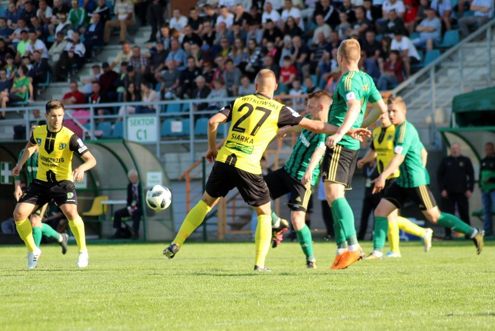 - 2 liga, Tarnobrzeg, 5.05.2018: Piłkarze Siarki Tarnobrzeg (żółto-czarne stroje) zremisowali 2-2 w Derbach Podkarpacia ze Stalą Stalowa Wola (fot. Radek Kuśmierz)