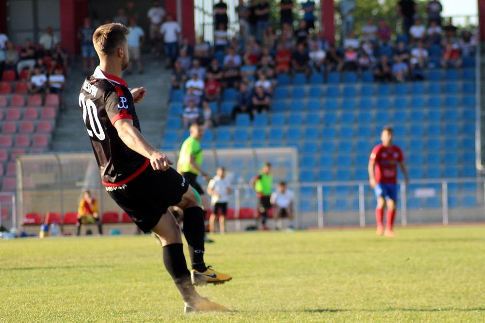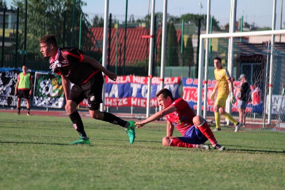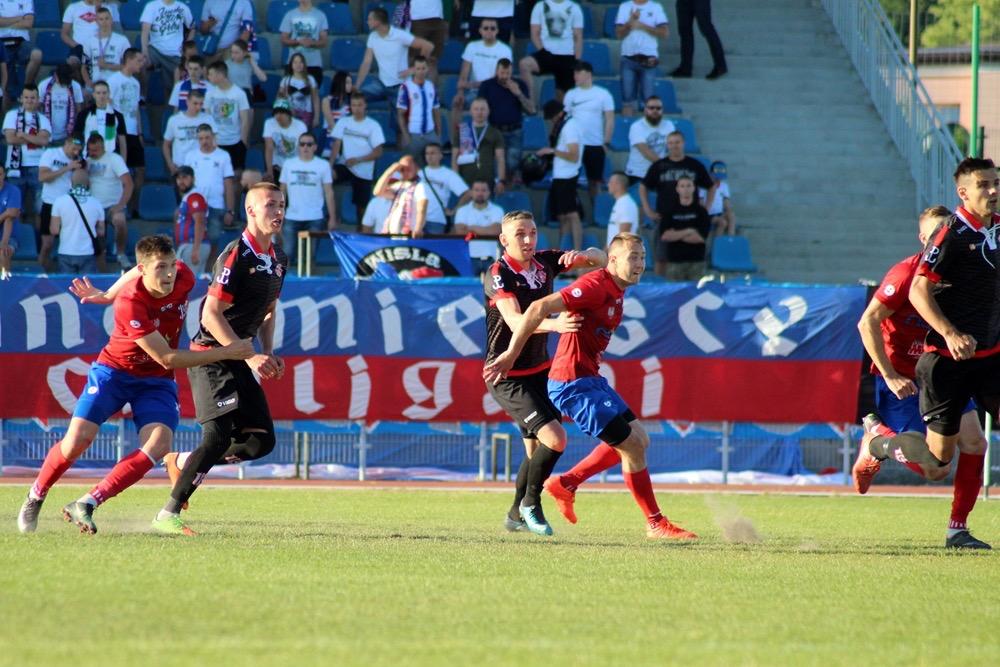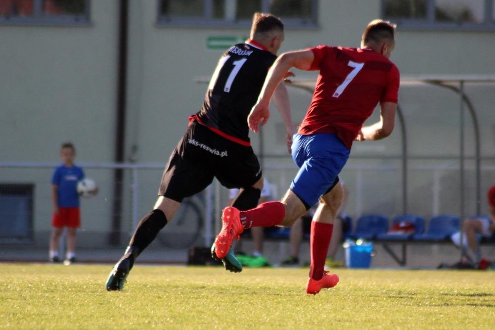 - 12 maja 2018, sobota: Resovia (czarne stroje) wygrała 3-0 w wyjazdowym meczu z Wisłą Sandomierz w spotkaniu rozegranych w ramach 28. kolejki 3 ligi grupy IV. Dzięki zwycięstwu rzeszowianie utrzymali pozycję lidera rozgrywek ze sporymi szansami na awans do 2 ligi (fot. Radosław Kuśmierz)