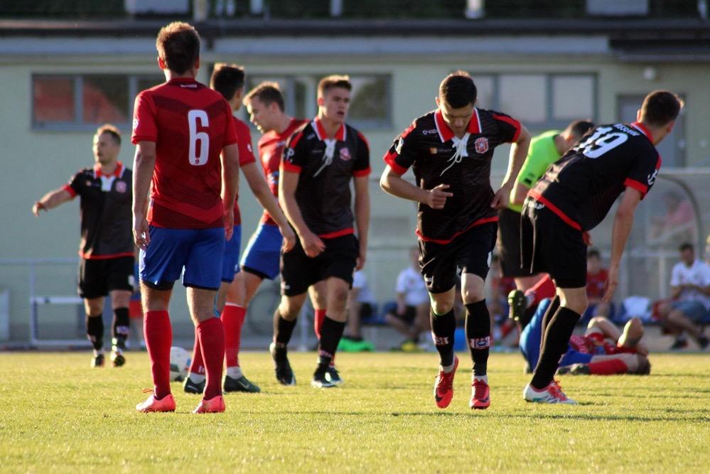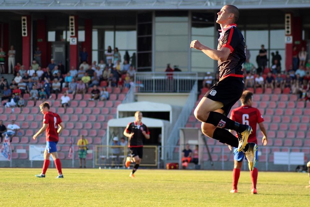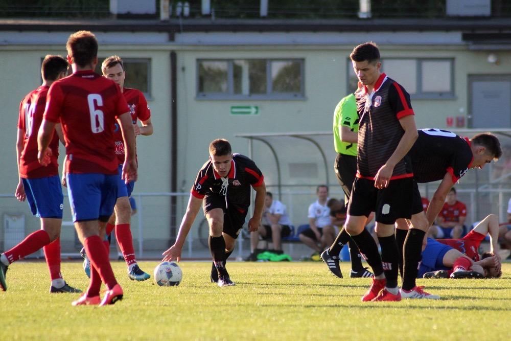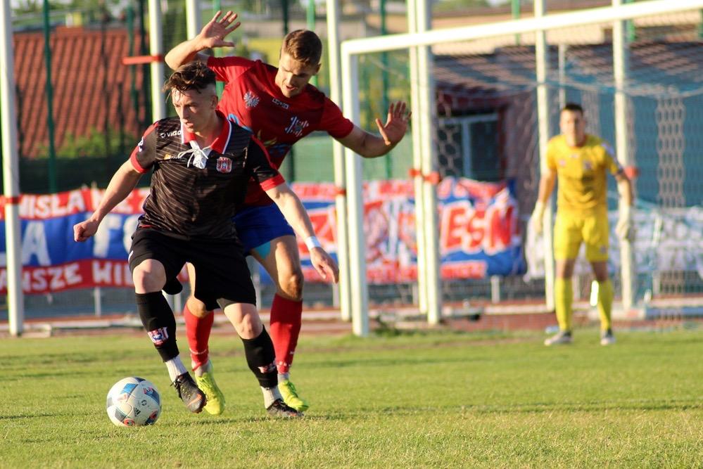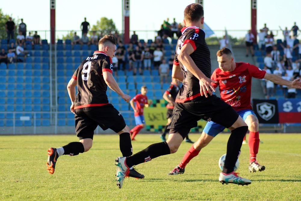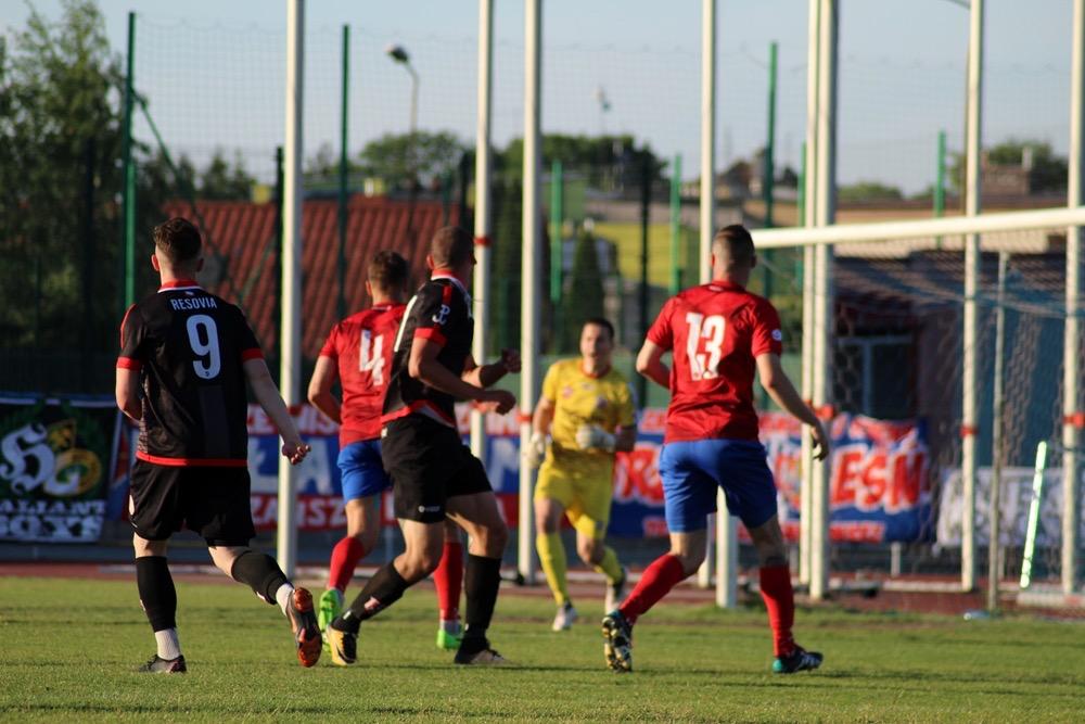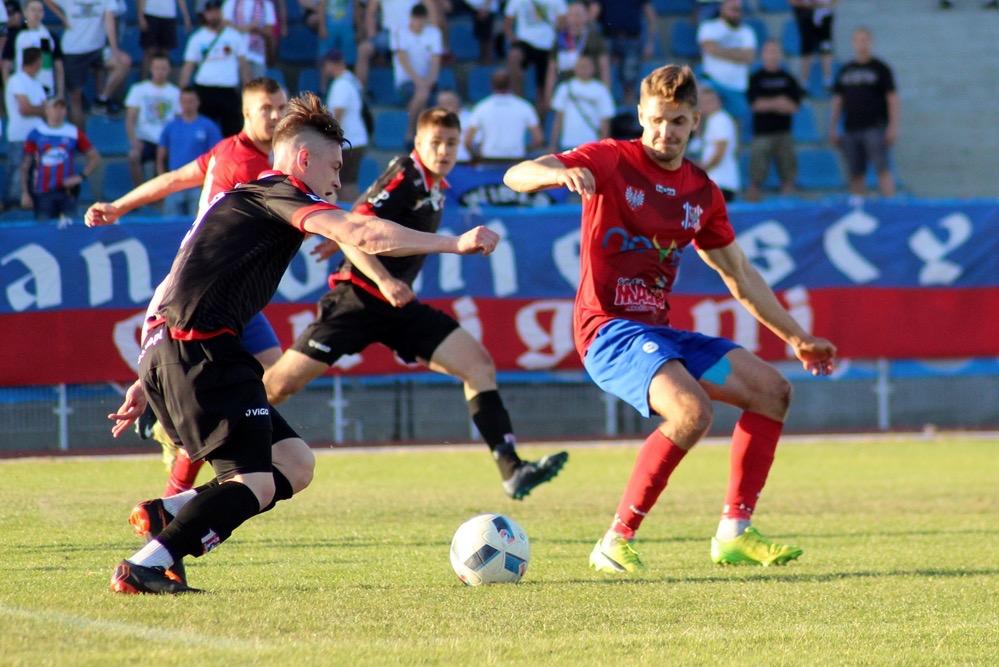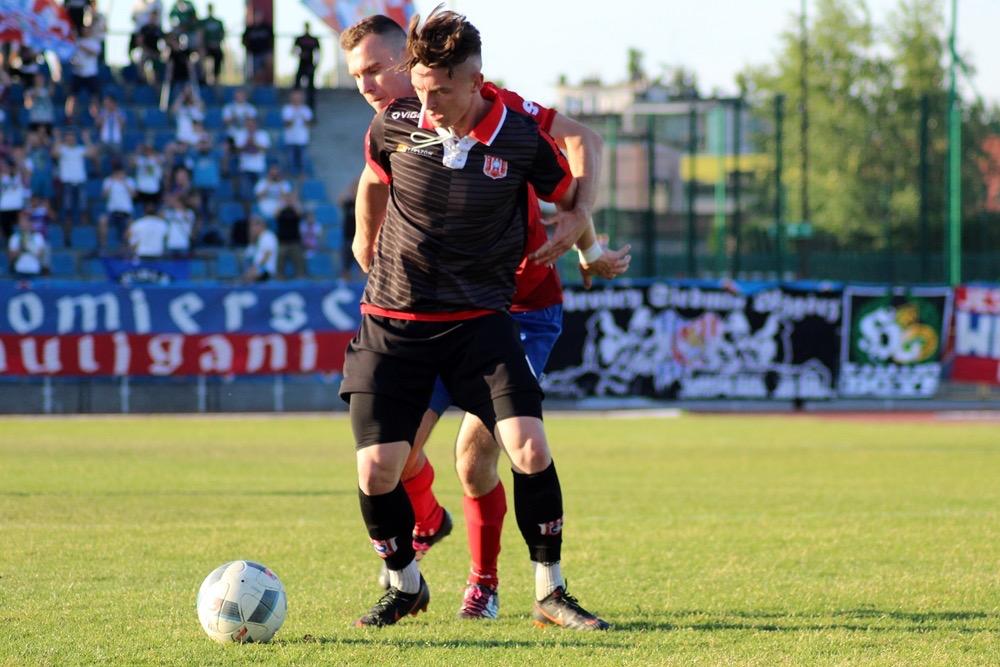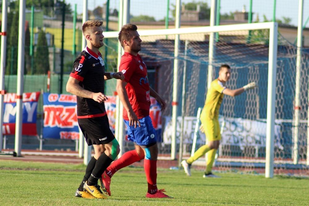 - 12 maja 2018, sobota: Resovia (czarne stroje) wygrała 3-0 w wyjazdowym meczu z Wisłą Sandomierz w spotkaniu rozegranych w ramach 28. kolejki 3 ligi grupy IV. Dzięki zwycięstwu rzeszowianie utrzymali pozycję lidera rozgrywek ze sporymi szansami na awans do 2 ligi (fot. Radosław Kuśmierz)