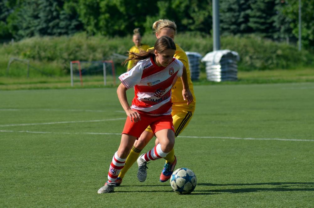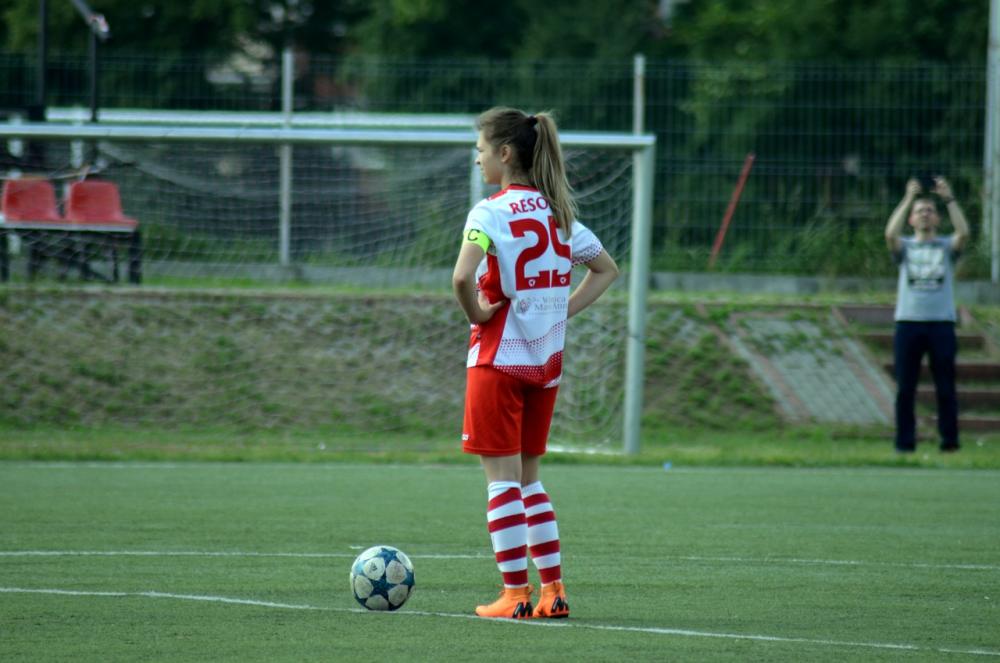 - Piłkarski Resovii (biało-czerwone stroje) zremisowały z GKS-em Katowice w meczu 1 ligi kobiet (fot. Adrianna Popkiewicz)