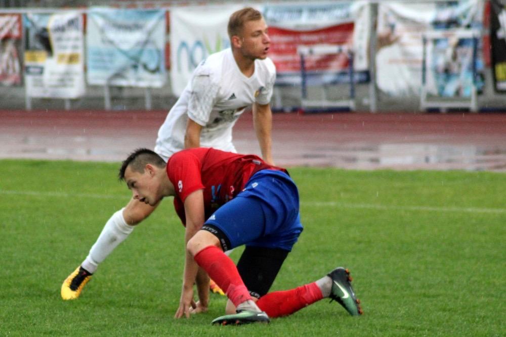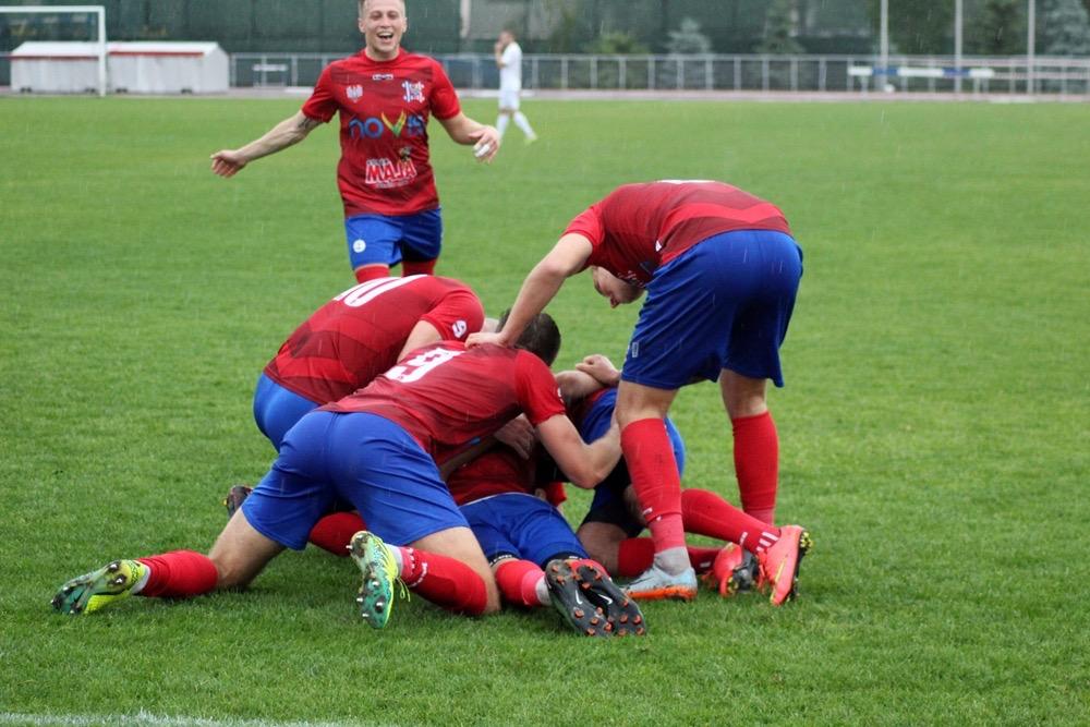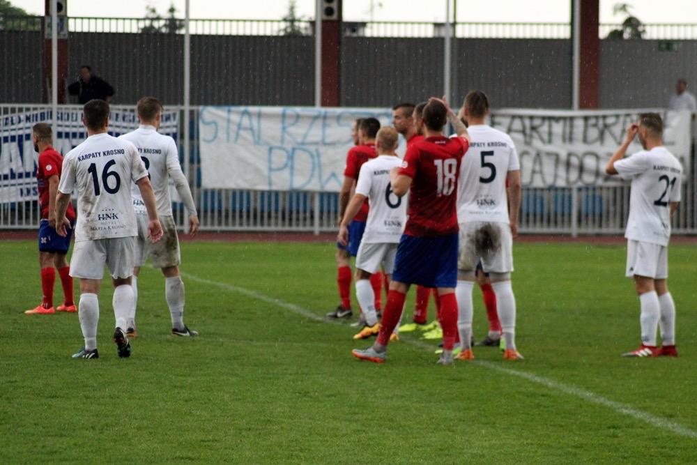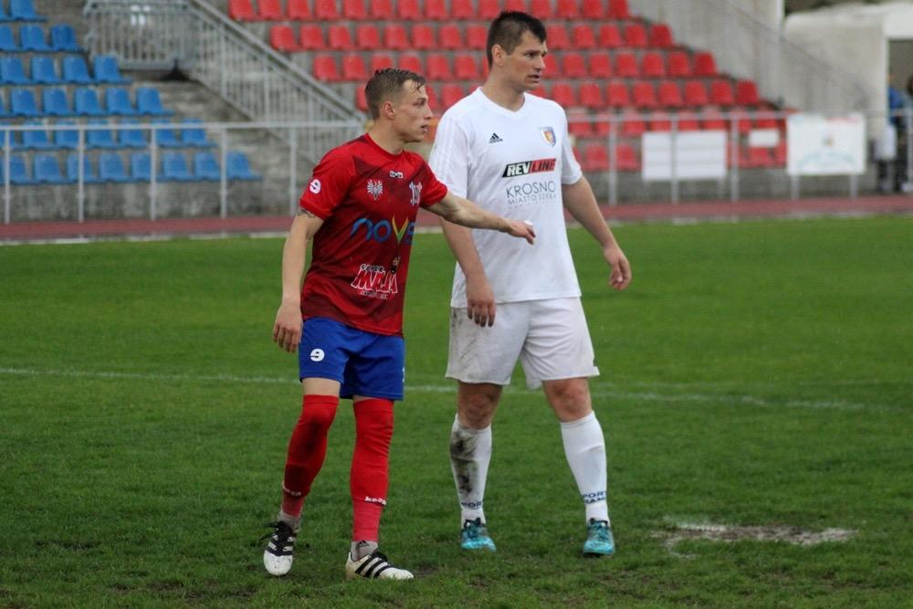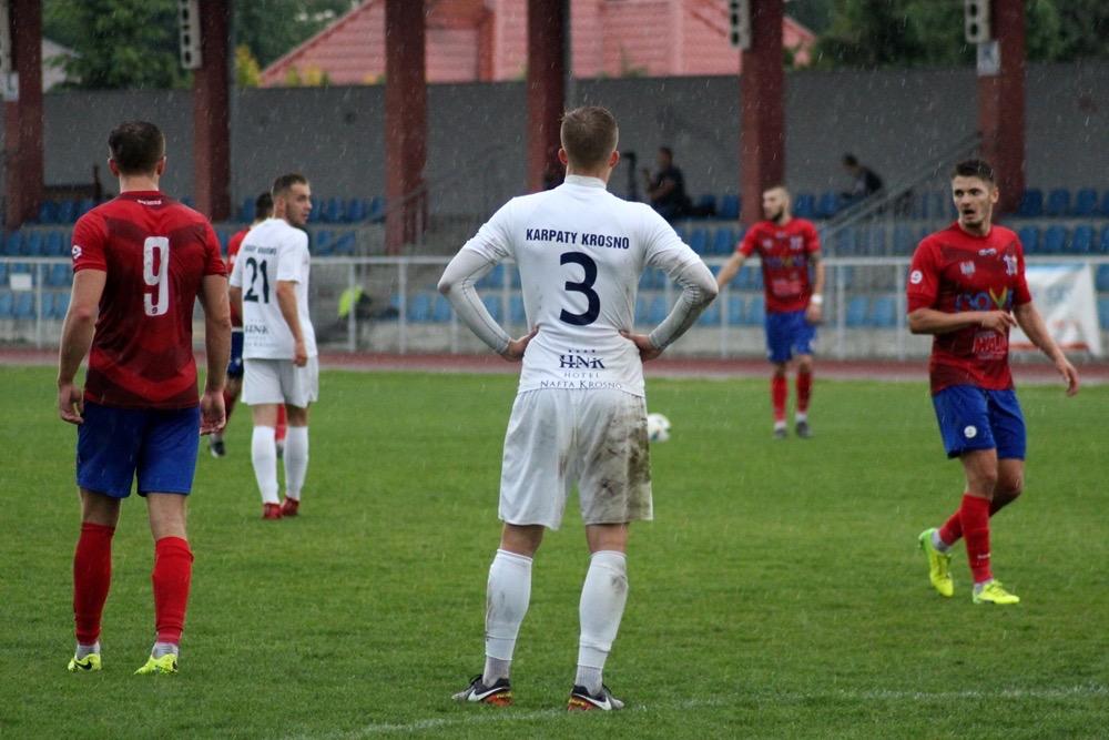 - Karpaty Krosno (biało-niebieskie stroje) przegrały w wyjazdowym pojedynku 3 ligi gr. IV z Wisłą Sandomierz 0-3 (fot. Radosław Kuśmierz)