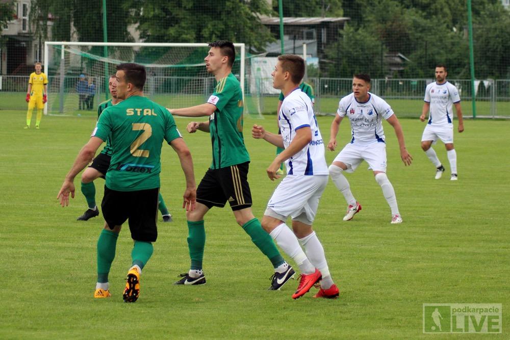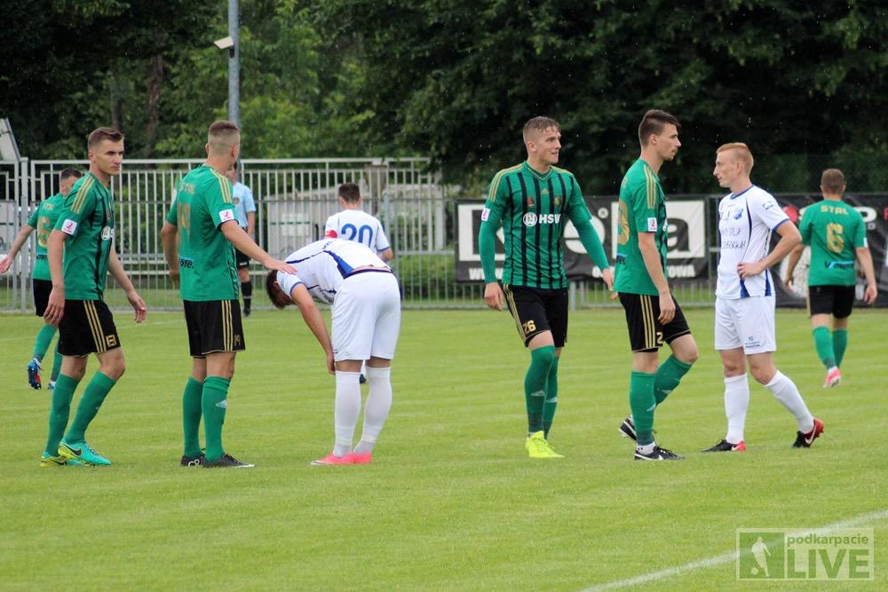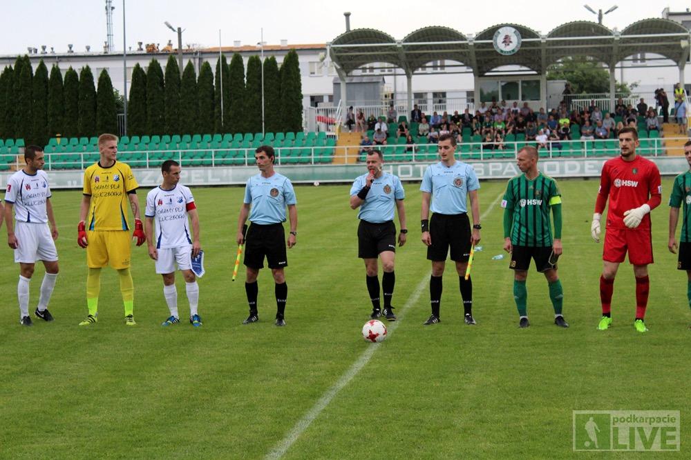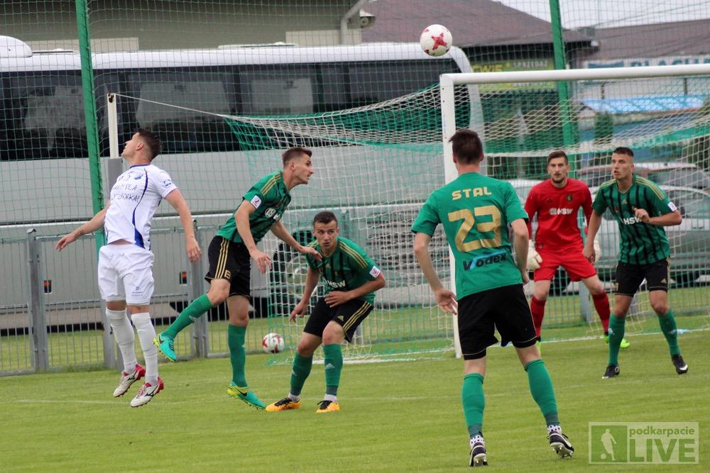 - Piłkarze Stali Stalowa Wola (zielono-czarne stroje) pokonali MKS Kluczbork 2-0 w meczu 34. kolejki rozgrywek 2 ligi w sezonie 2017/2018 i zapewnili sobie utrzymanie na drugoligowym froncie (fot. Radosław Kuśmierz)