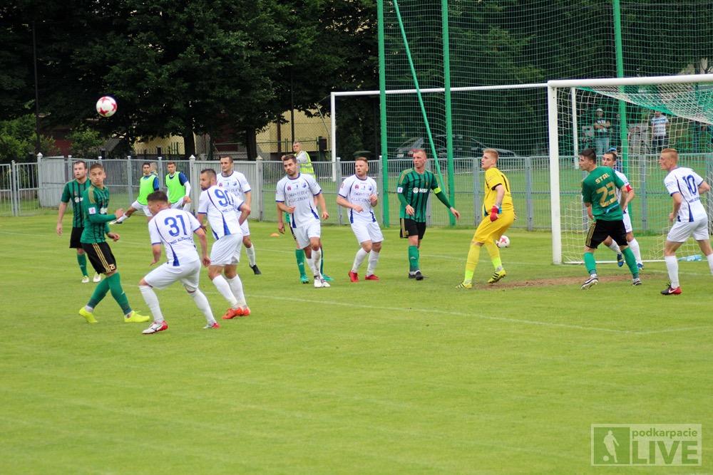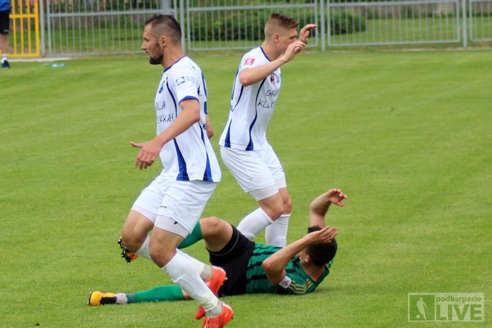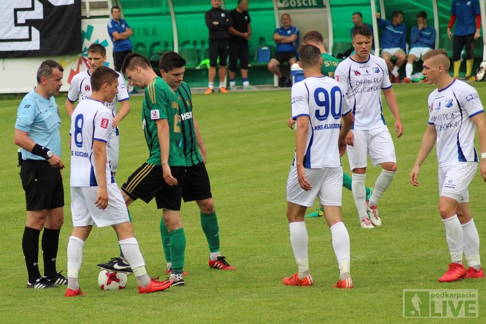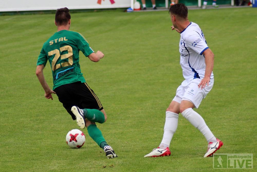 - Piłkarze Stali Stalowa Wola (zielono-czarne stroje) pokonali MKS Kluczbork 2-0 w meczu 34. kolejki rozgrywek 2 ligi w sezonie 2017/2018 i zapewnili sobie utrzymanie na drugoligowym froncie (fot. Radosław Kuśmierz)