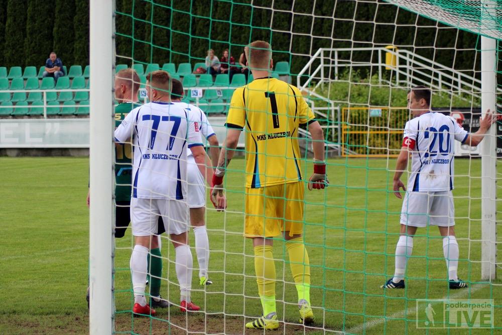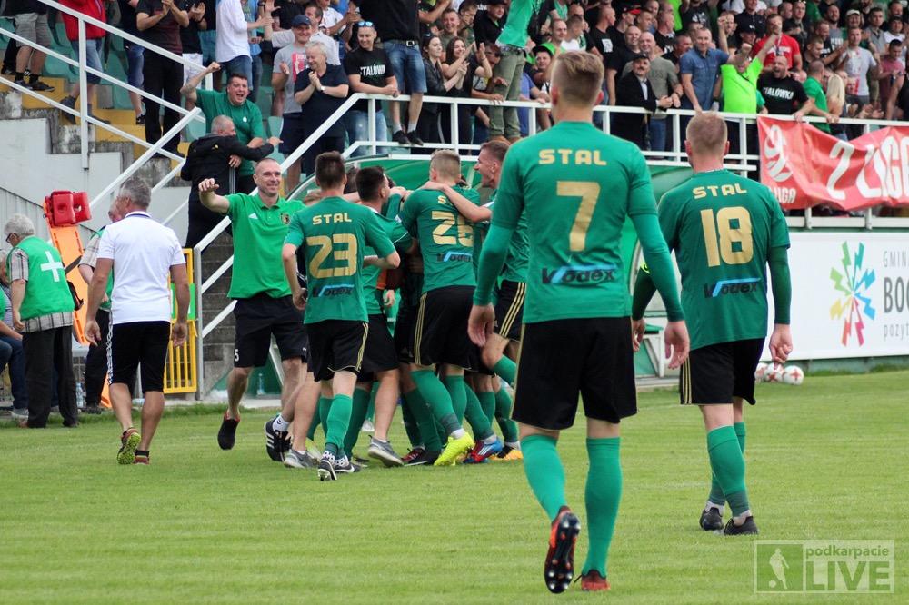 - Piłkarze Stali Stalowa Wola (zielono-czarne stroje) pokonali MKS Kluczbork 2-0 w meczu 34. kolejki rozgrywek 2 ligi w sezonie 2017/2018 i zapewnili sobie utrzymanie na drugoligowym froncie (fot. Radosław Kuśmierz)