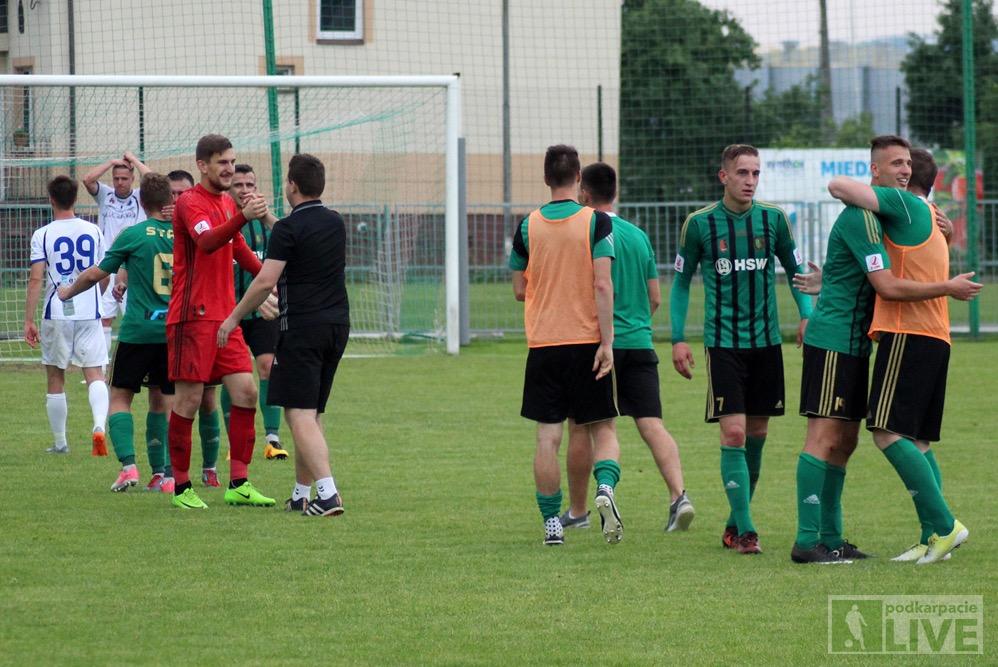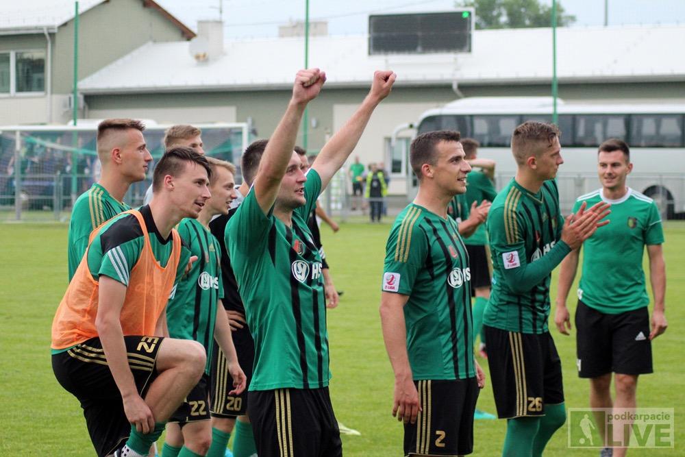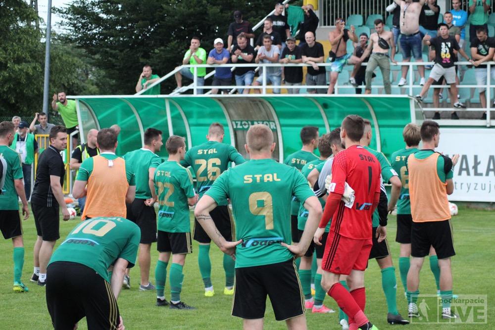 - Piłkarze Stali Stalowa Wola (zielono-czarne stroje) pokonali MKS Kluczbork 2-0 w meczu 34. kolejki rozgrywek 2 ligi w sezonie 2017/2018 i zapewnili sobie utrzymanie na drugoligowym froncie (fot. Radosław Kuśmierz)