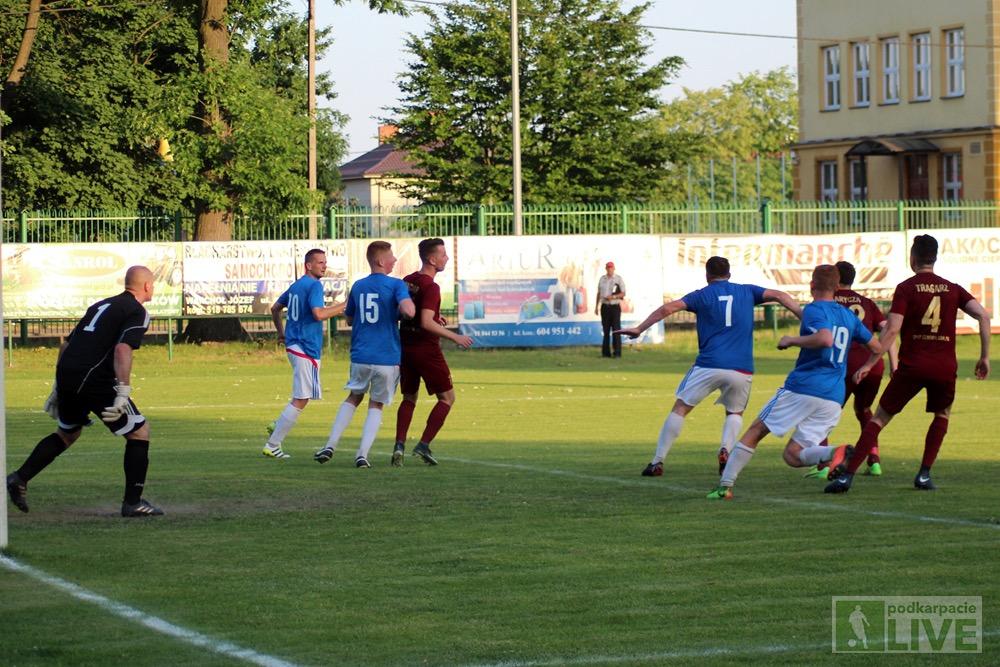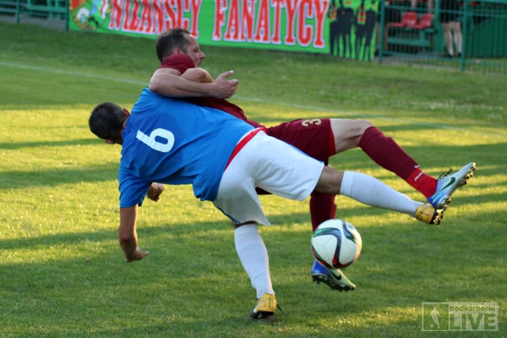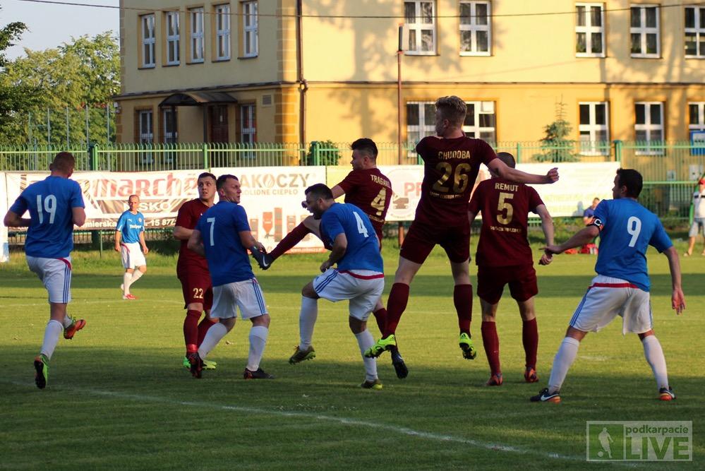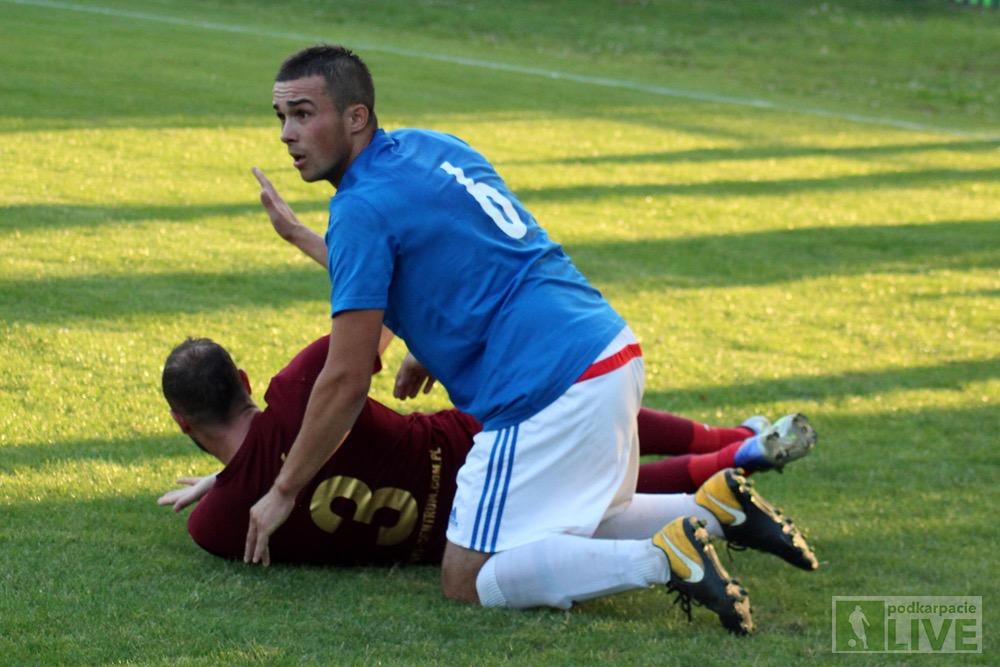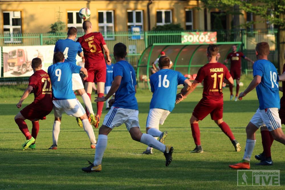 - Rzemieślnik Pilzno (bordowe stroje) wygrał 2-0 w wyjazdowym pojedynku 4 ligi podkarpackiej z Sokołem Nisko (fot. Radosław Kuśmierz)