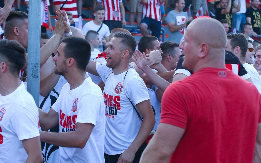 - Piłkarze Resovii (biało-czerwone koszulki) wygrali z KSZO Ostrowiec Świętokrzyski 4-1 w meczu 33. kolejki rozgrywek i zapewnili sobie awans do 2 ligi.