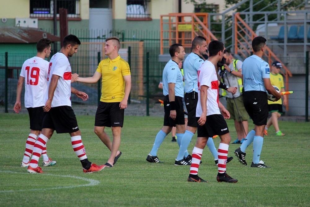 - Piłkarze Resovii (biało-czerwone koszulki) pokonali 6-1 rezerwy Siarki Tarnobrzeg w meczu finałowym Pucharu Polski na szczeblu wojewódzkim. Spotkanie zostało rozegrane na Stadionie Miejskim w Tarnobrzegu (fot. Radosław Kuśmierz)