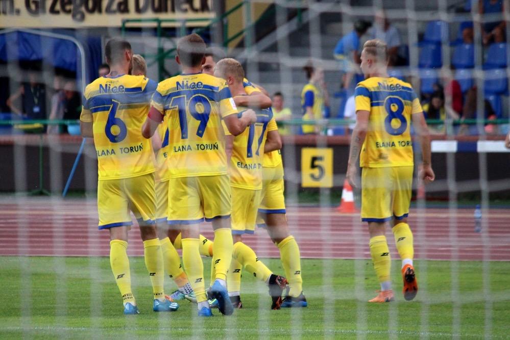 - 4.08.2018, Toruń. Piłkarze Stali Stalowa Wola (zielono-czarne stroje) przegrali 1-2 z Elaną Toruń w wyjazdowym meczu 3. kolejki rozgrywek 2 ligi (fot. Radosław Kuśmierz)