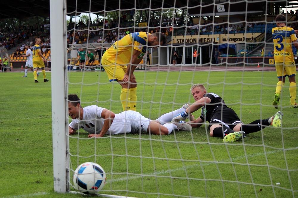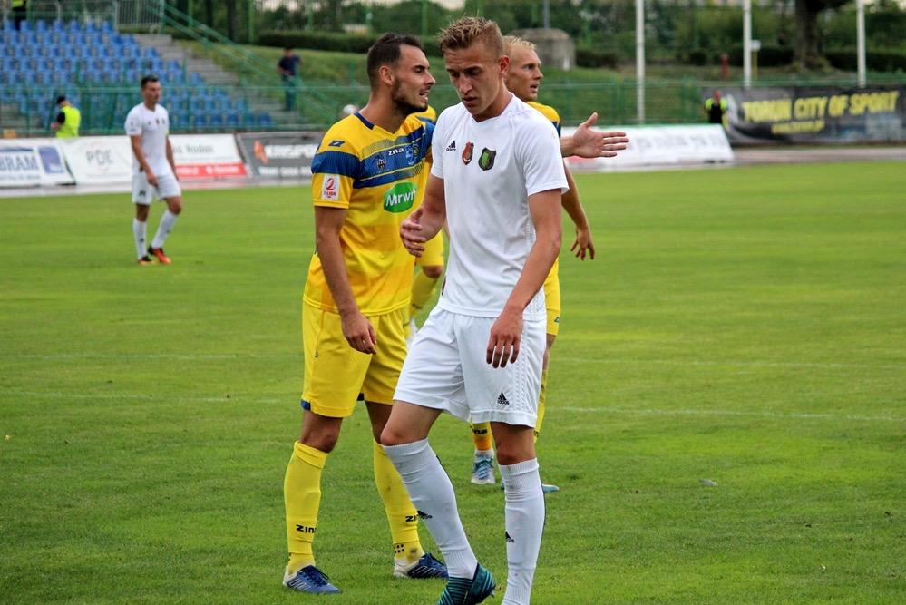 - 4.08.2018, Toruń. Piłkarze Stali Stalowa Wola (zielono-czarne stroje) przegrali 1-2 z Elaną Toruń w wyjazdowym meczu 3. kolejki rozgrywek 2 ligi (fot. Radosław Kuśmierz)