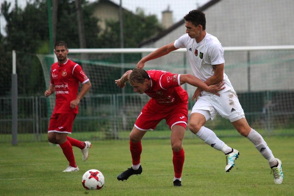 - 11.08.2018, Boguchwała: Stal Stalowa Wola (białe stroje) pokonała Widzew Łódź 3-0 w meczu 4. kolejki rozgrywek 2 ligi. Spotkanie zostało rozegrane na Izo-Arenie w Boguchwale (fot. Radosław Kuśmierz)