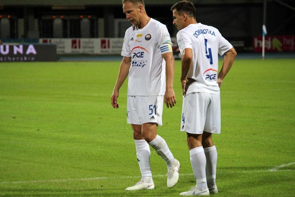 - 17.08.2018, Mielec: W meczu 1 ligi piłkarze Stali Mielec (białe stroje) ulegli przed własną publicznością Podbeskidziu Bielsko-Biała. Mecz zakończył się wygraną goście 1-0 (fot. Radosław Kuśmierz).