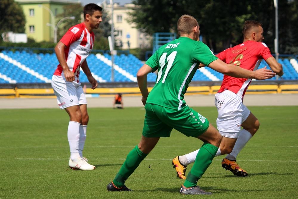 - 18.08.2018, Rzeszów: Resovia (biało-czerwone stroje) zremisowała 2-2 z Górnikiem Łęczna w meczu 5. kolejki rozgrywek 2 ligi. Spotkanie zostało rozegrane na Stadionie Miejskim w Rzeszowie (fot. Radosław Kuśmierz)
