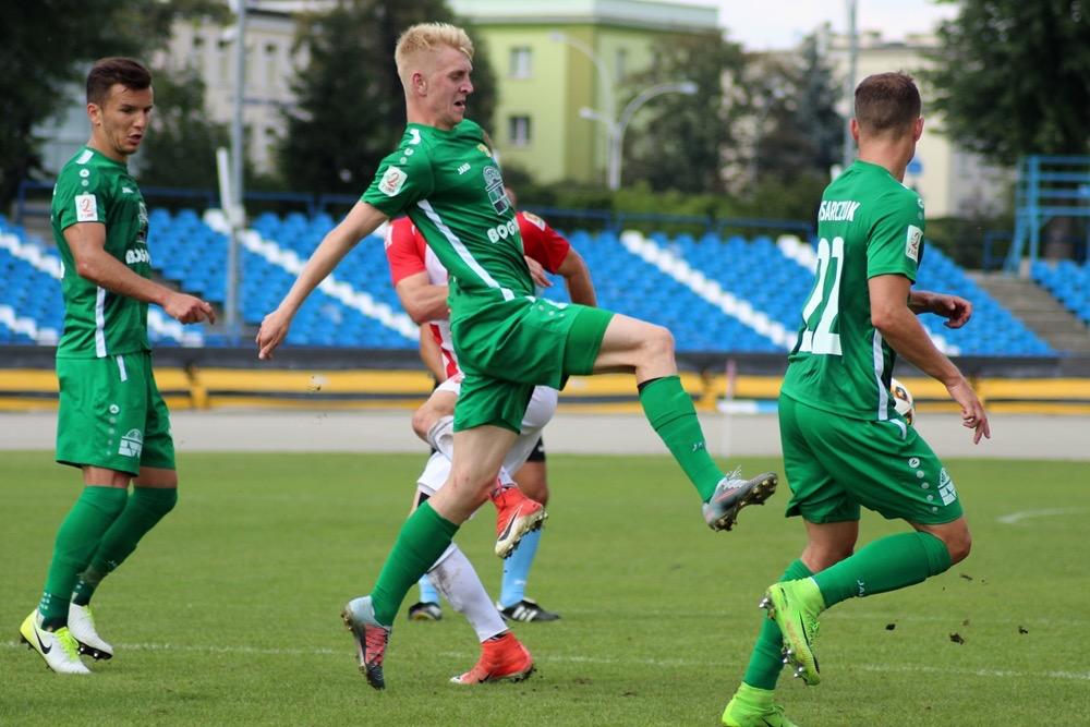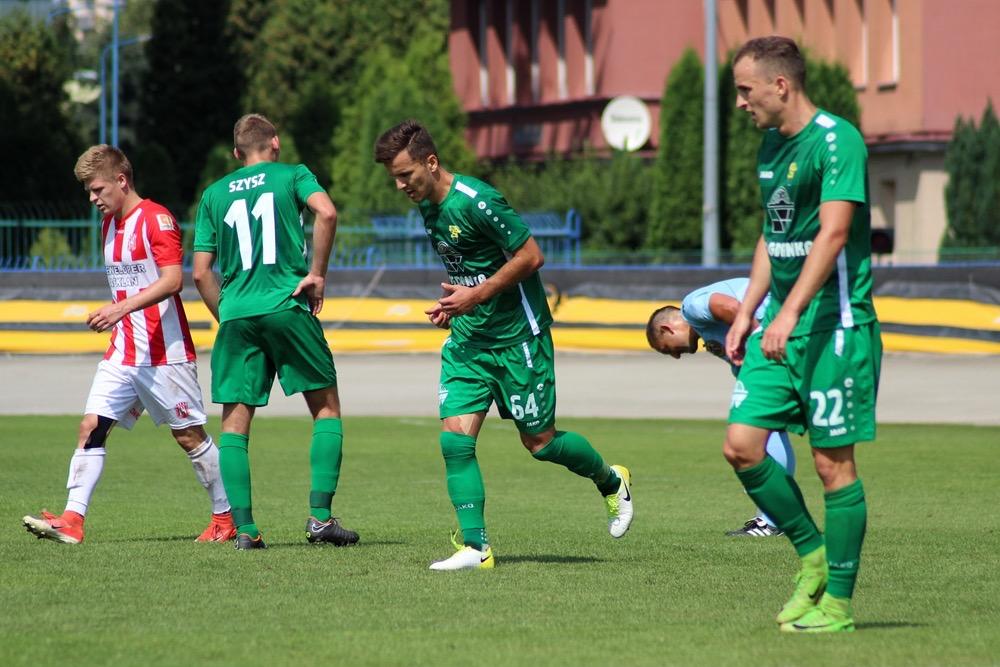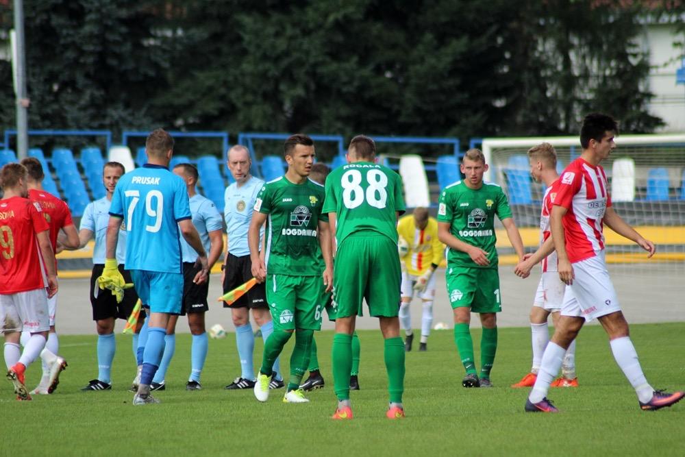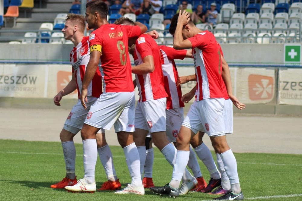- 18.08.2018, Rzeszów: Resovia (biało-czerwone stroje) zremisowała 2-2 z Górnikiem Łęczna w meczu 5. kolejki rozgrywek 2 ligi. Spotkanie zostało rozegrane na Stadionie Miejskim w Rzeszowie (fot. Radosław Kuśmierz)