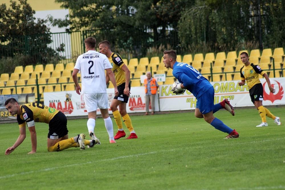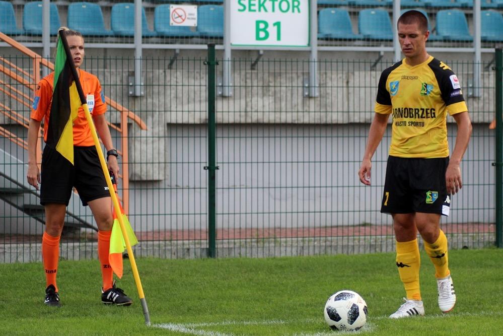 - 18.08.2018, Tarnobrzeg: Piłkarze Siarki Tarnobrzeg (żółto-czarne stroje) pokonali Rozwój Katowice 1-0 w meczu 5. kolejki rozgrywek 2 ligi (fot. Radosław Kuśmierz)