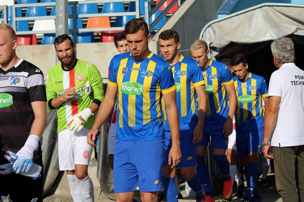 - 22.08.2018, Rzeszów. Piłkarze Resovii (biało-czerwone koszulki) zremisowali 0-0 z Elaną Toruń w środowym meczu 2 ligi. Podopieczni Szymona Grabowskiego zdobyli wprawdzie gola, ale sędzia dopatrzył się spalonego (fot. Radosław Kuśmierz)