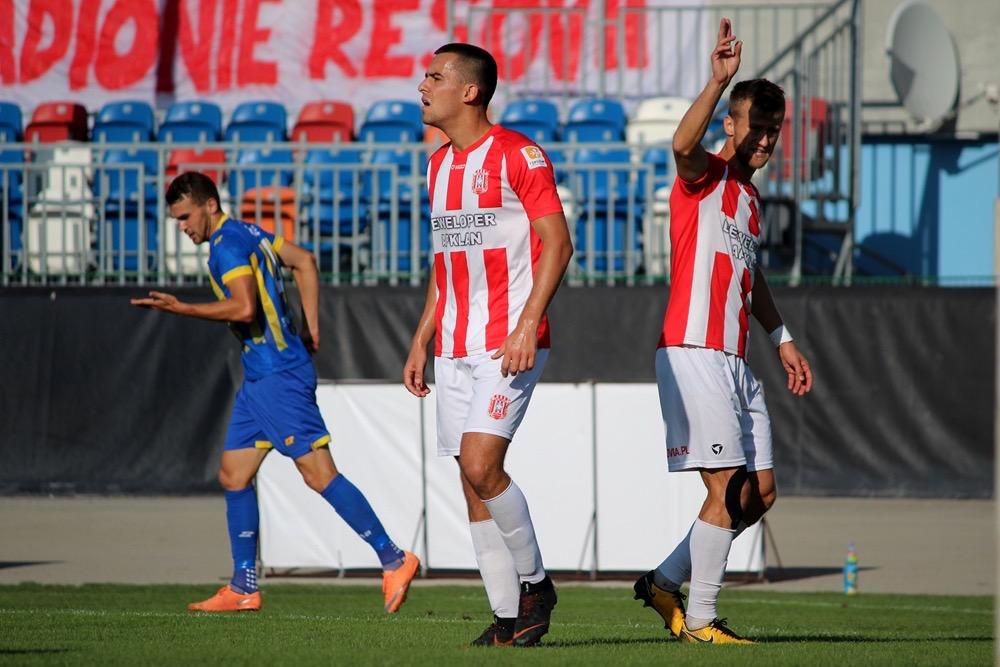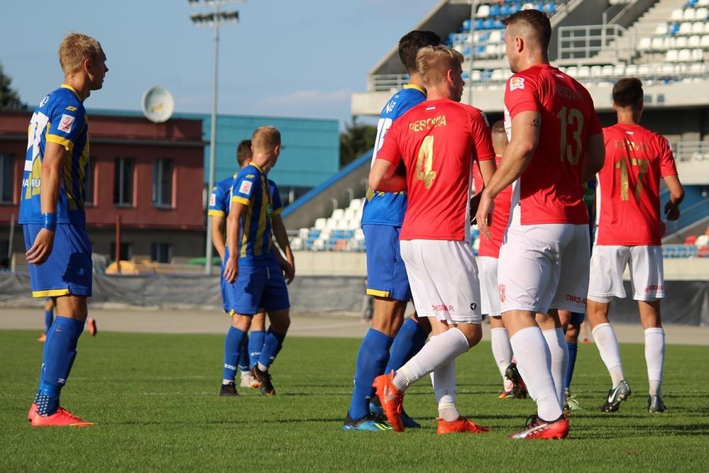 - 22.08.2018, Rzeszów. Piłkarze Resovii (biało-czerwone koszulki) zremisowali 0-0 z Elaną Toruń w środowym meczu 2 ligi. Podopieczni Szymona Grabowskiego zdobyli wprawdzie gola, ale sędzia dopatrzył się spalonego (fot. Radosław Kuśmierz)