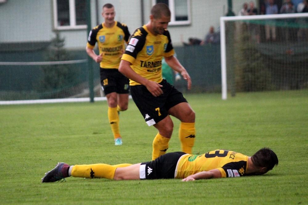 - 25.08.2018, Stadion Miejski w Tarnobrzegu. Piłkarze Siarki Tarnobrzeg (żółto-czarne stroje) wygrali ze Stalą Stalowa Wola 3-0 w Derbach Podkarpacia (fot. Radosław Kuśmierz)