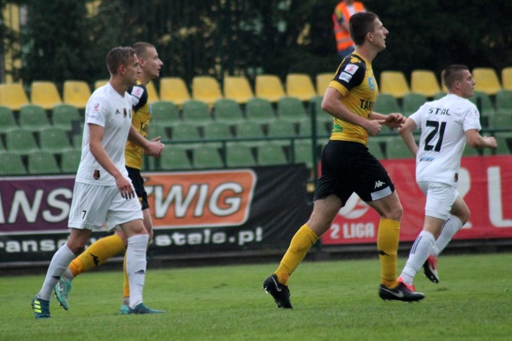 - 25.08.2018, Stadion Miejski w Tarnobrzegu. Piłkarze Siarki Tarnobrzeg (żółto-czarne stroje) wygrali ze Stalą Stalowa Wola 3-0 w Derbach Podkarpacia (fot. Radosław Kuśmierz)