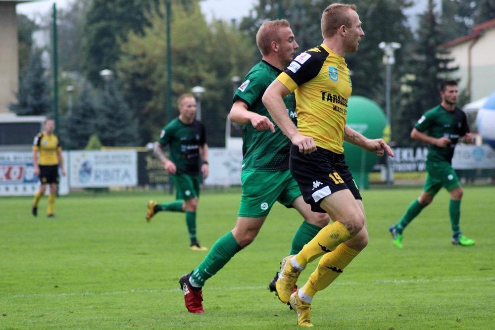 - 8.09.2018, Stadion Miejski w Tarnobrzegu. Piłkarze Siarki (żółto-czarne stroje) ulegli przed własną publicznością drużynie ROW-u Rybnik 0-2 w meczu 9. kolejki rozgrywek 2 ligi (fot. Radosław Kuśmierz)