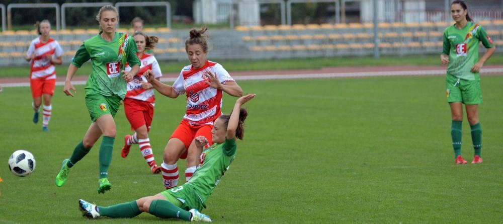 - 8.09.2018, Rzeszów. Piłkarski Resovia (biało-czerwone stroje) zremisowały przed własną publicznością 1-1 z Sokołem Kolbuszowa w Derbach Podkarpacia w 1 lidze piłki nożnej kobiet.