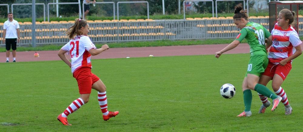 - 8.09.2018, Rzeszów. Piłkarski Resovia (biało-czerwone stroje) zremisowały przed własną publicznością 1-1 z Sokołem Kolbuszowa w Derbach Podkarpacia w 1 lidze piłki nożnej kobiet.