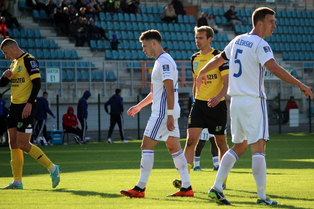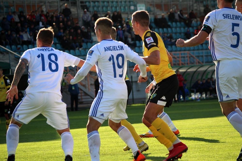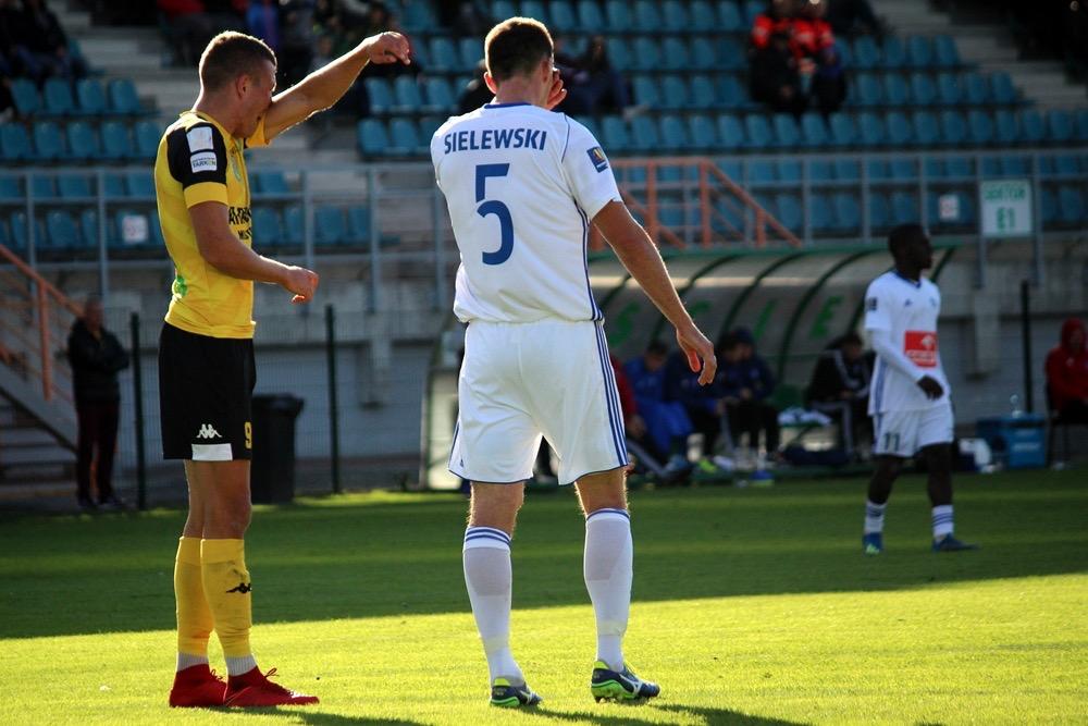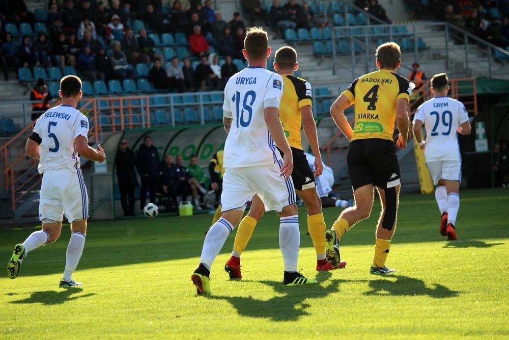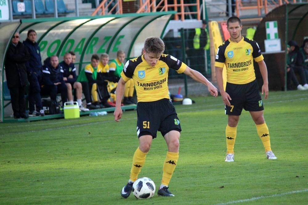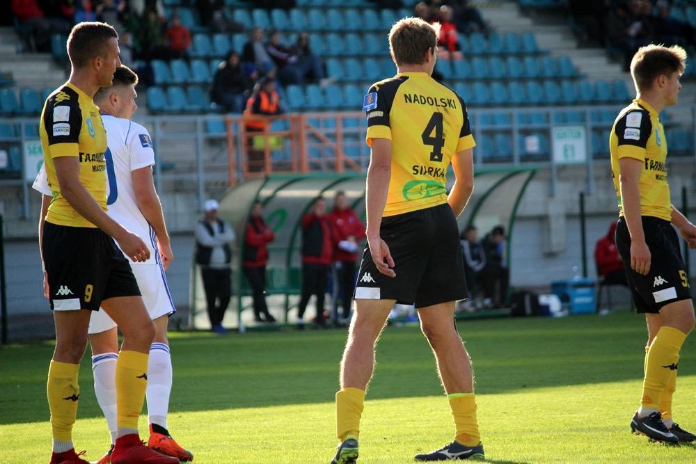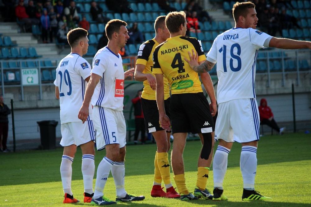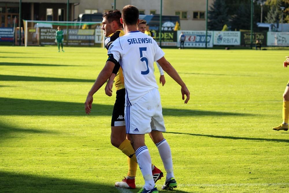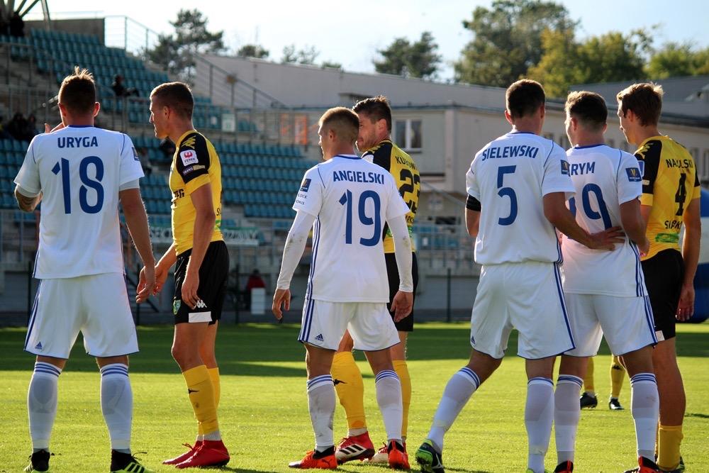 - Stadion Miejski w Tarnobrzegu, 25.09.2018: piłkarze Siarki Tarnobrzeg (żółto-czarne stroje) przegrali przed własną publicznością z ekstraklasową Wisłą Płock w meczu I rundy Pucharu Polski. "Siarkowcy" ulegli Wiśle 1-4 odpadając z dalszej rywalizacji (fot. Radosław Kuśmierz)