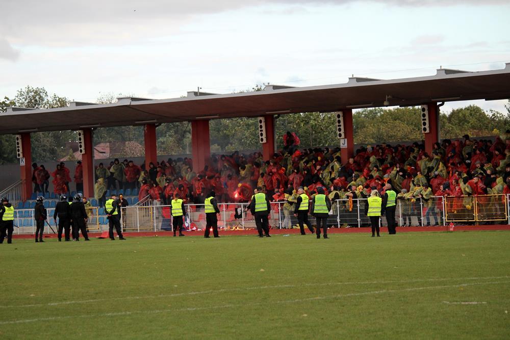 Zdjęcia z meczu Pucharu Polski pomiędzy Wisłą Sandomierz a Koroną Kielce. Spotkanie zostało przerwane z powodu wtargnięcia kibiców na boisko.