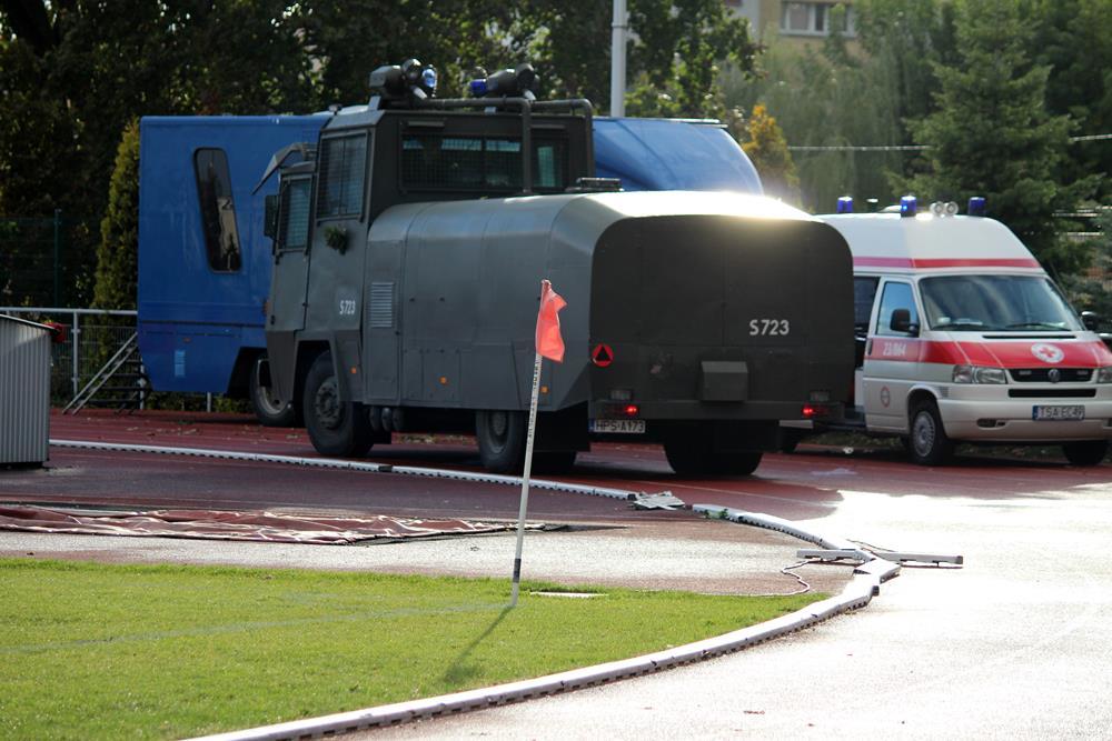 Zdjęcia z meczu Pucharu Polski pomiędzy Wisłą Sandomierz a Koroną Kielce. Spotkanie zostało przerwane z powodu wtargnięcia kibiców na boisko.