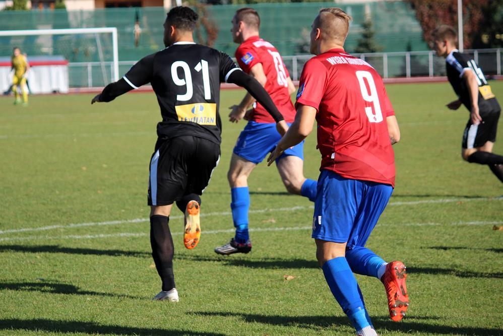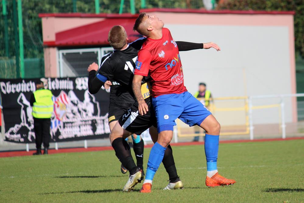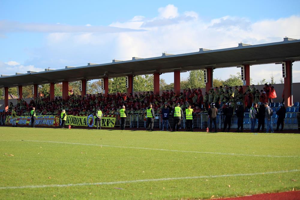 - 3.10.2018, Sandomierz. Piłkarze Wisły Sandomierz (czerwono-niebieskie stroje) sprawili sporą niespodziankę eliminując z Pucharu Polski ekstraklasową Koronę Kielce. Gospodarze zwyciężyli 3-2 (fot. Radosław Kuśmierz)
