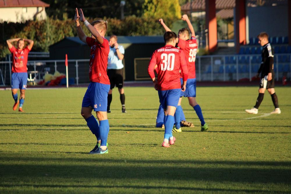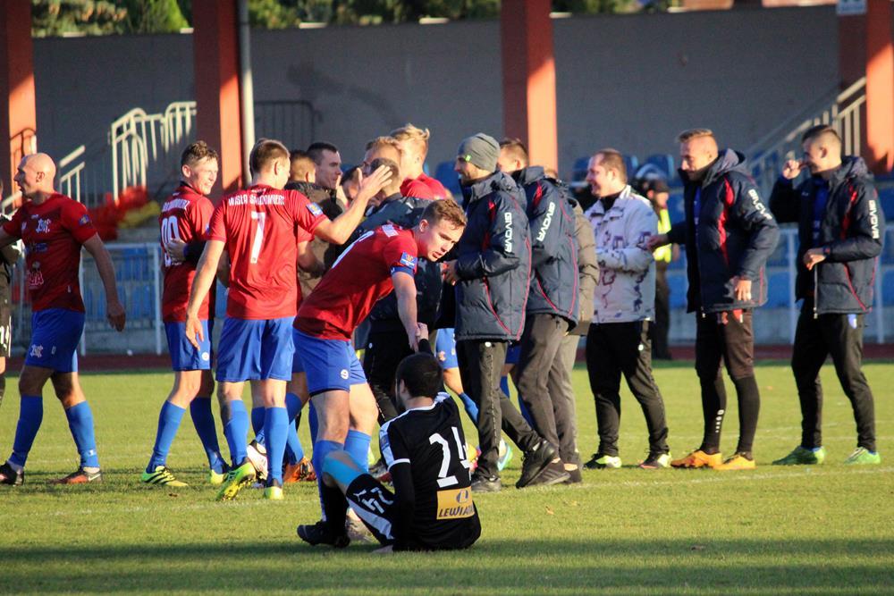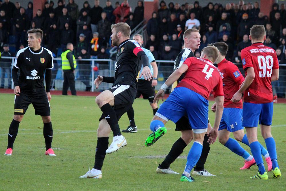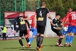 - 3.10.2018, Sandomierz. Piłkarze Wisły Sandomierz (czerwono-niebieskie stroje) sprawili sporą niespodziankę eliminując z Pucharu Polski ekstraklasową Koronę Kielce. Gospodarze zwyciężyli 3-2 (fot. Radosław Kuśmierz)