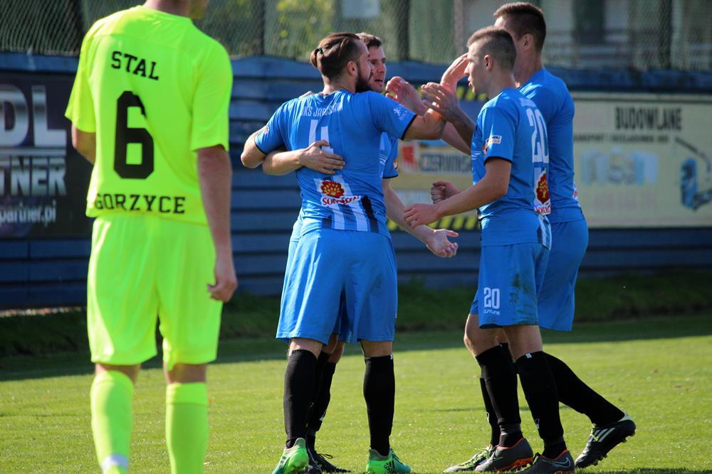 - 06.10.2018, Gorzyce. Piłkarze JKS-u Jarosław (niebieskie stroje) pokonali 1-0 Stal Gorzyce w wyjazdowym pojedynku 4 ligi podkarpackiej (fot. Radosław Kuśmierz)
