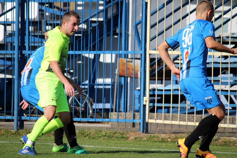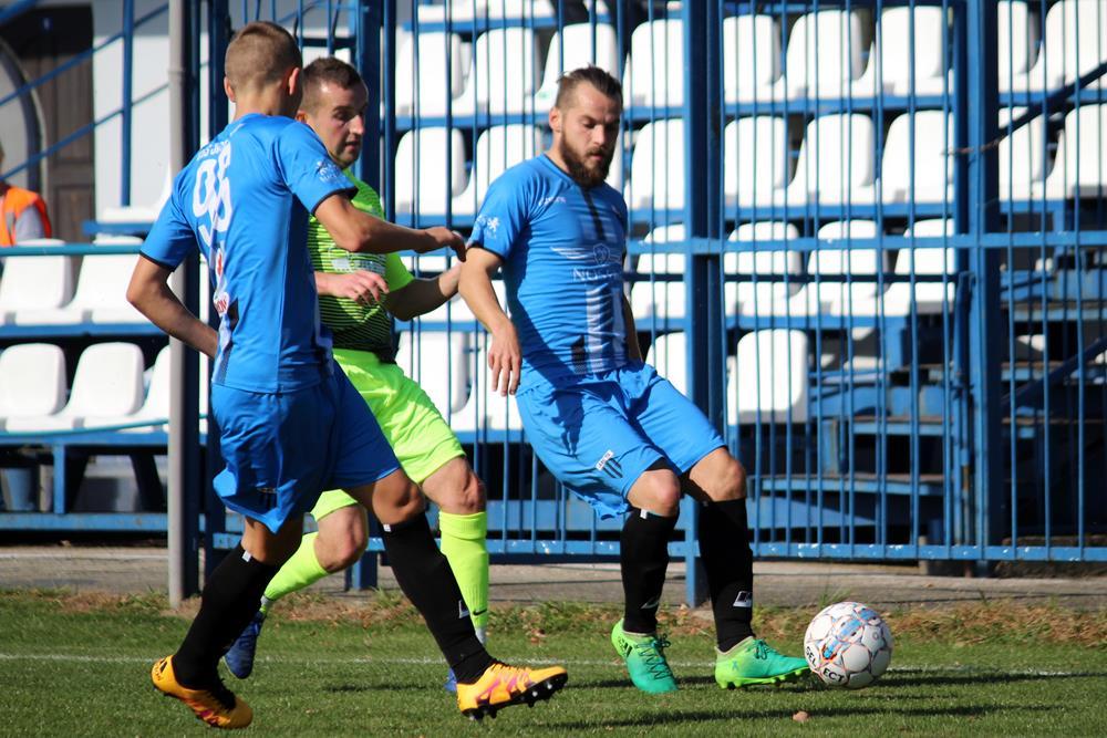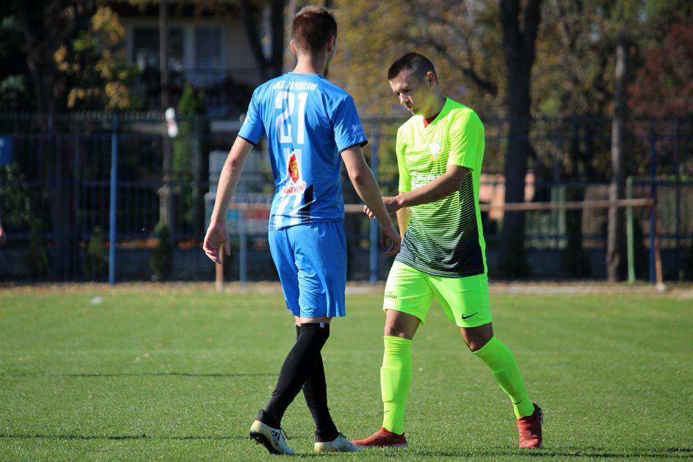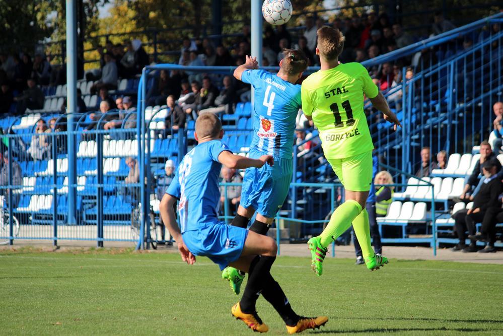 - 06.10.2018, Gorzyce. Piłkarze JKS-u Jarosław (niebieskie stroje) pokonali 1-0 Stal Gorzyce w wyjazdowym pojedynku 4 ligi podkarpackiej (fot. Radosław Kuśmierz)