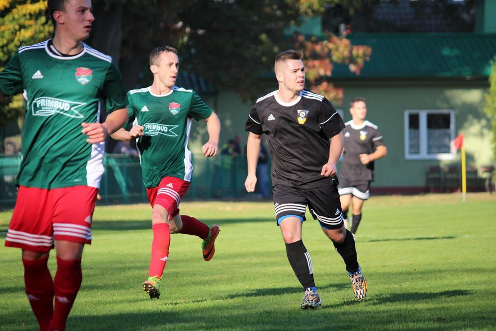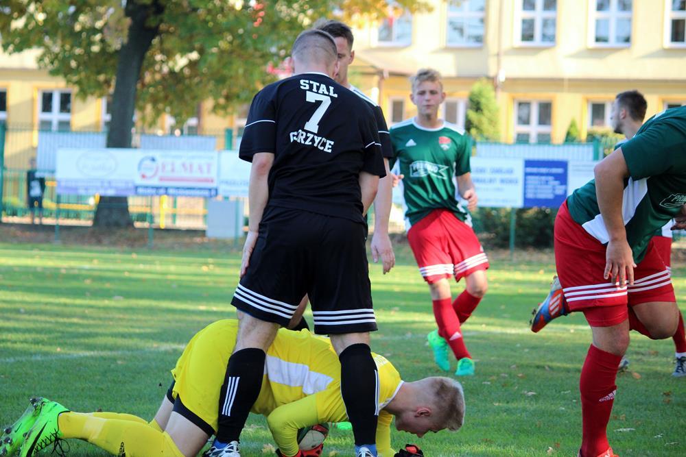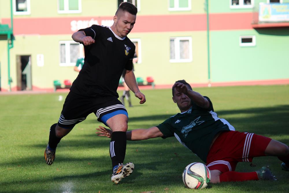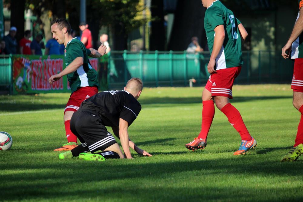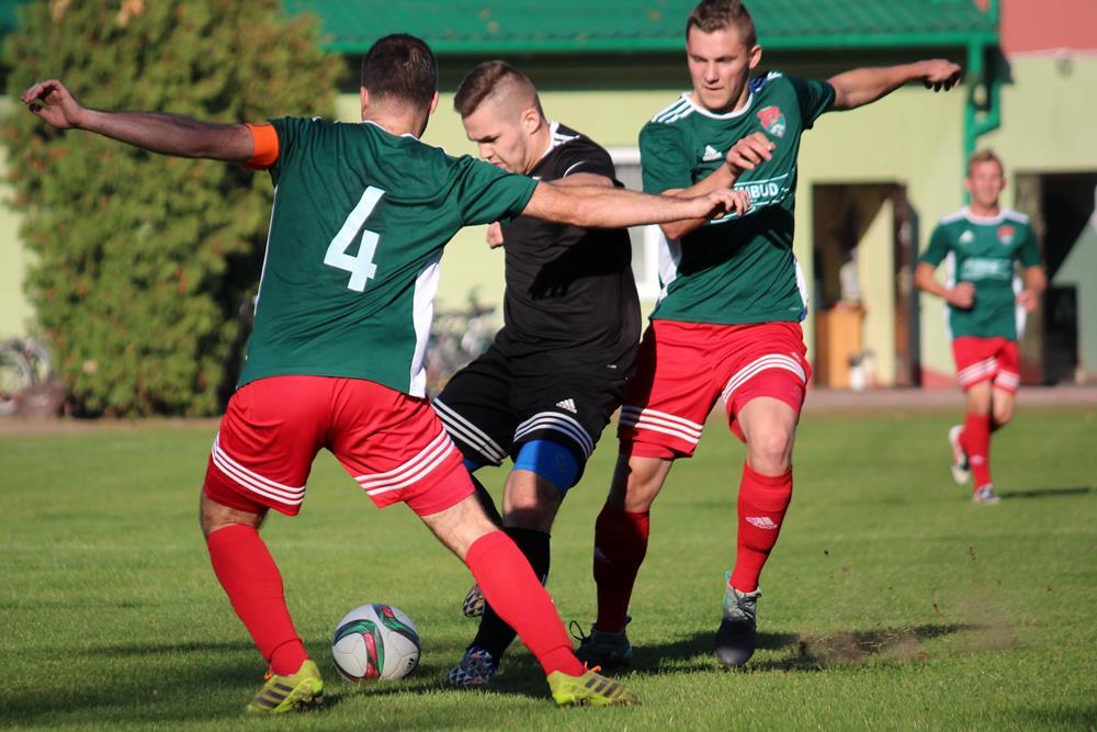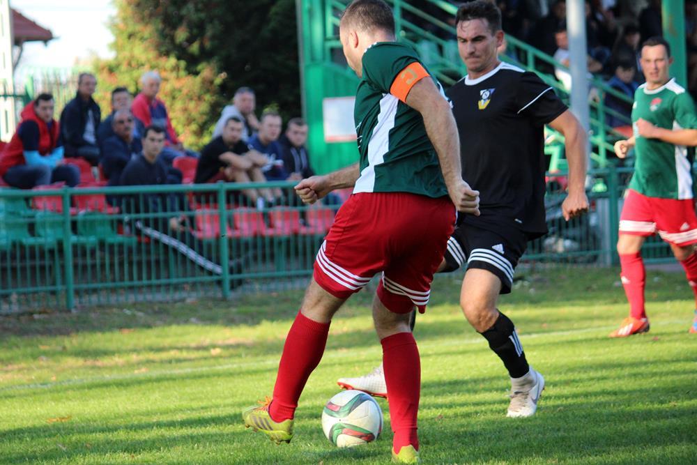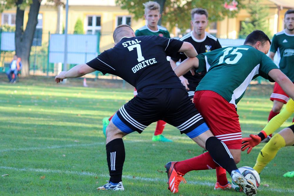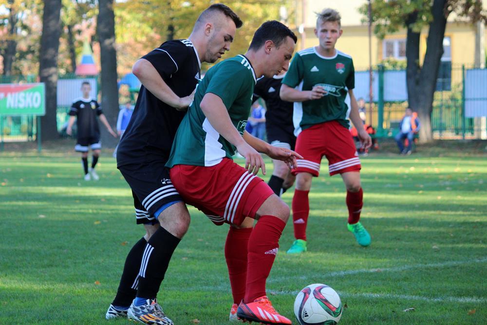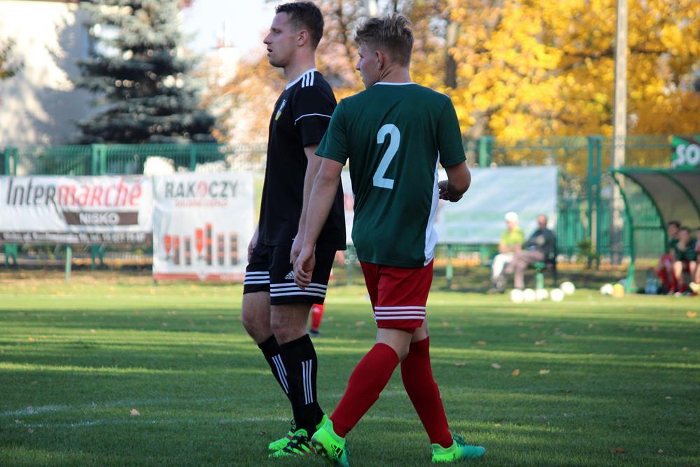 - 13.10.2018, Nisko. Piłkarze Stali Gorzyce (czarne stroje) pokonali Sokół Nisko 1-0 w wyjazdowym pojedynku 4 ligi podkarpackiej (fot. Radosław Kuśmierz)