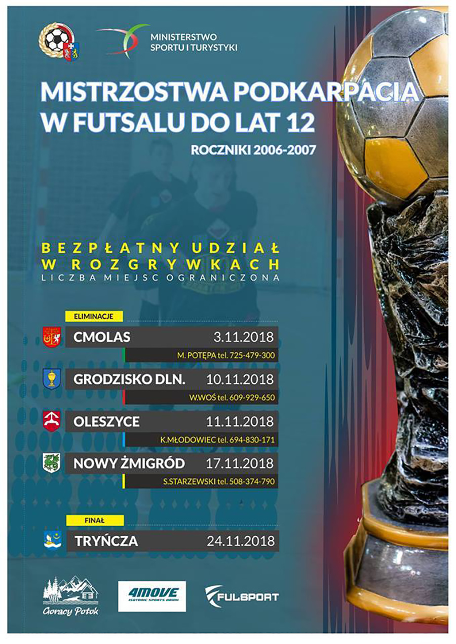 W sobotę 3 listopada 2018 roku odbędzie się pierwszy z czterech zaplanowanych turniejów eliminacyjnych Mistrzostw Podkarpacia do lat 12. Rozstrzygnięcie nastąpi w ostatnią sobotę listopada w Tryńczy.