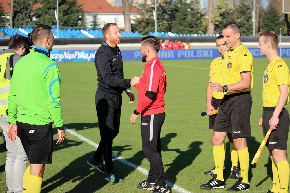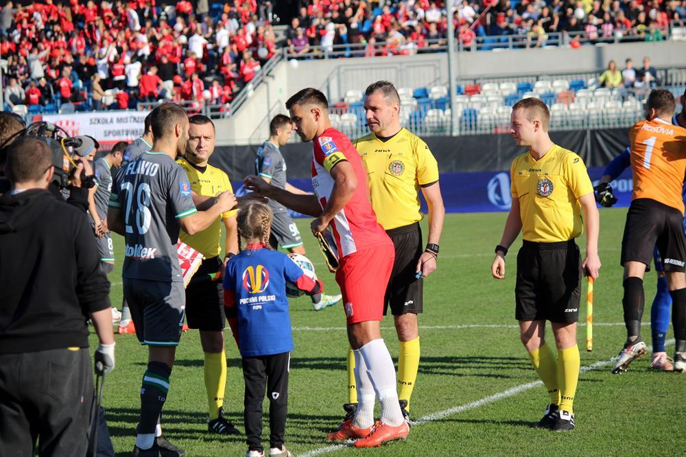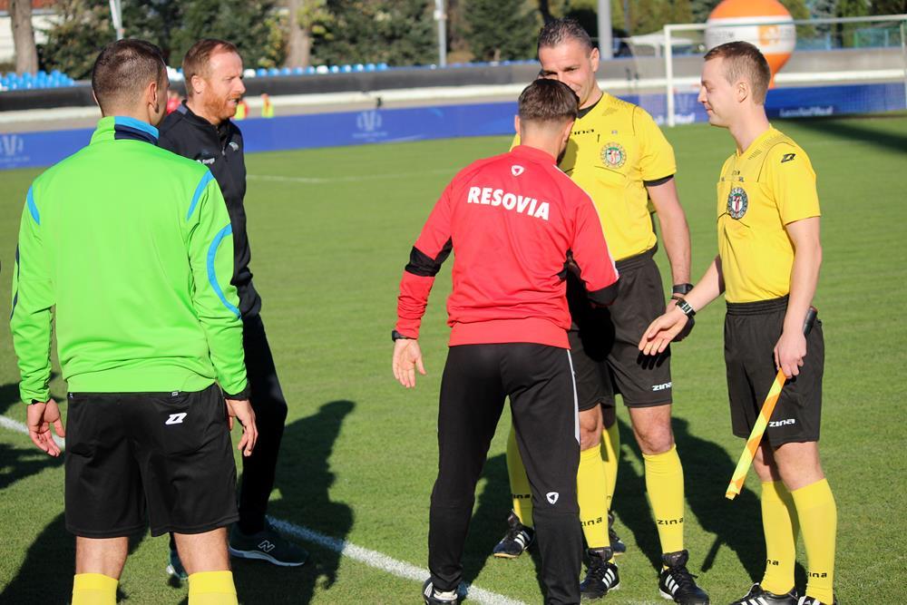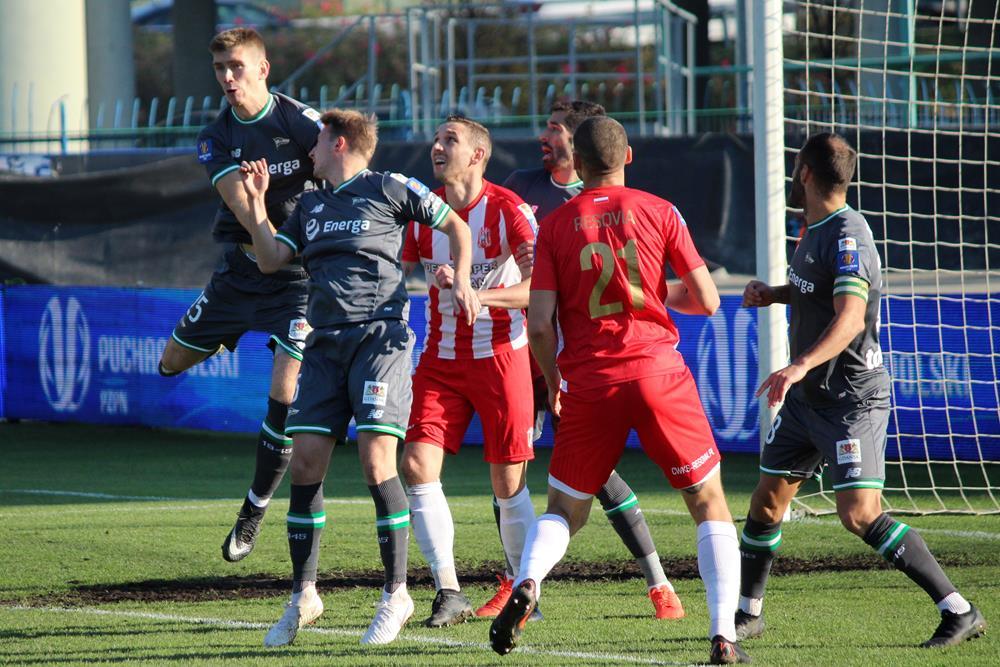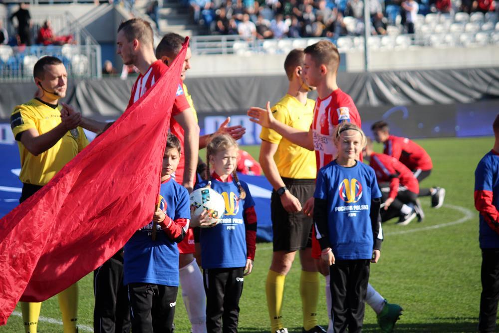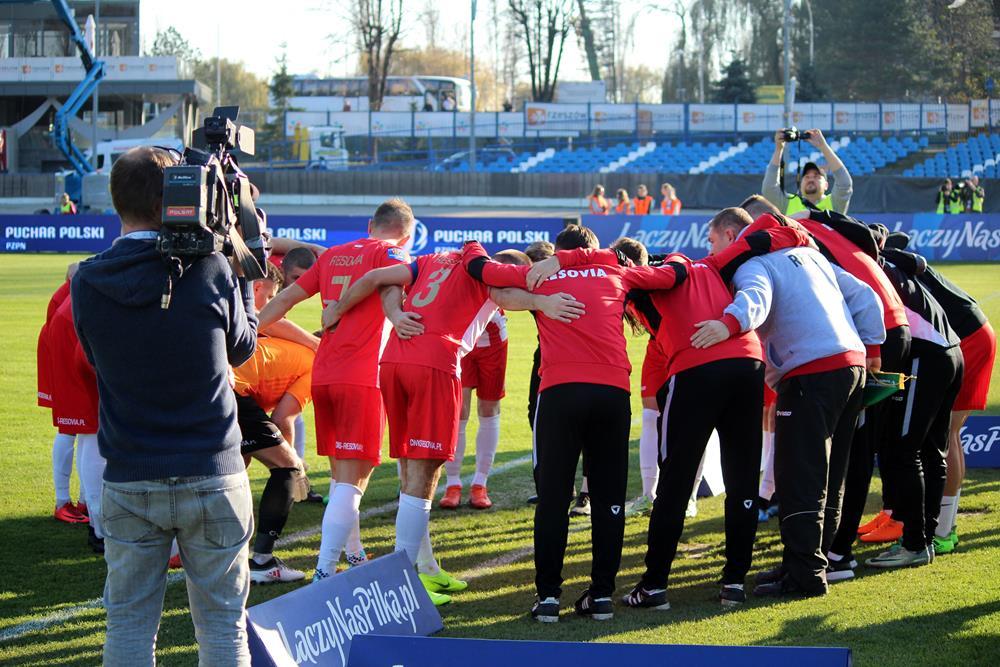 - 7.11.2018, Stadion Miejski w Rzeszowie. Trzecioligowa Resovia (biało-czerwone koszulki) przegrała z występującą w Ekstraklasie Lechią Gdańsk w meczu 1/16 finału Pucharu Polski. Mecz zakończył się wygraną gości 3-1 (fot. Radosław Kuśmierz)