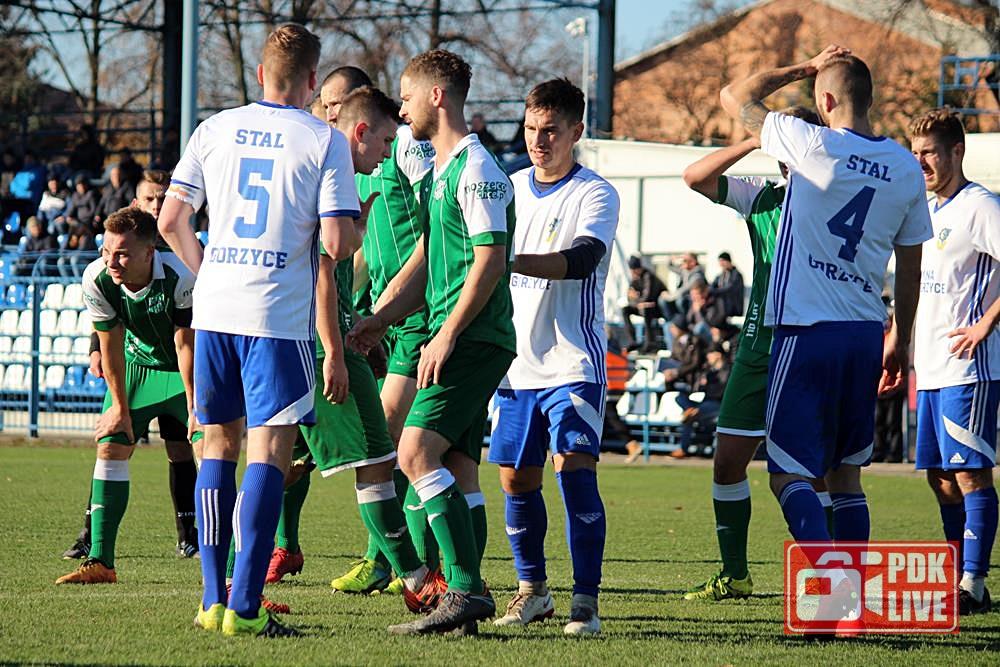 - 17.11.2018, Gorzyce. Piłkarze Wisłoki Dębica (biało-zielone stroje) pokonali Stali Gorzyce 2-1 w wyjazdowym spotkaniu 4 ligi podkarpackiej (fot. Radosław Kuśmierz)