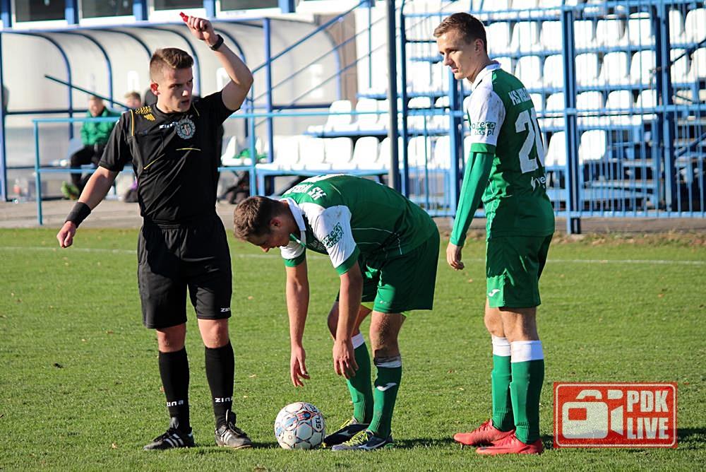- 17.11.2018, Gorzyce. Piłkarze Wisłoki Dębica (biało-zielone stroje) pokonali Stali Gorzyce 2-1 w wyjazdowym spotkaniu 4 ligi podkarpackiej (fot. Radosław Kuśmierz)