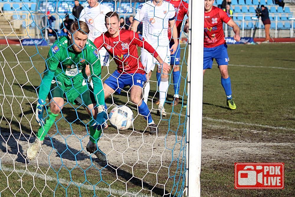 - Odra Opole (białe stroje) pokonała na wyjeździe Wisłę Sandomierz 1-0 w meczu 1/8 finału Pucharu Polski (fot. Radosław Kuśmierz)