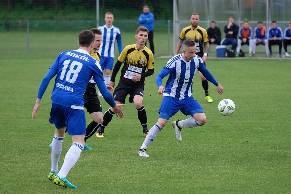 Było to spotkanie pierwszej kolejki rundy rewanżowej w 4 lidze podkarpackiej. Niestety zima, która przyszła na początku marca w zeszłym sezonie przesunęła to spotkanie aż na 16 maja. Sokół Sieniawa ostatecznie wygrał 1-0 i praktycznie zapewnił sobie powrót po kilku latach przerwy do 3 ligi (fot. Łukasz Solski / nowiny24.pl)