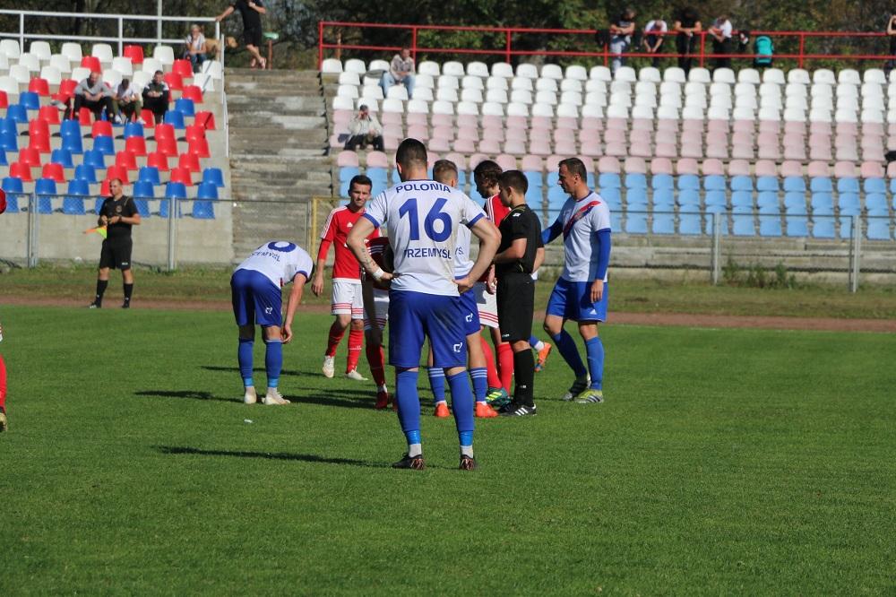 Sokół Sieniawa prowadził do przerwy z Polonią Przemyśl po bramce Sebastiana Brockiego. Napastnik Sokoła zdobył gola tuż przed przerwą.