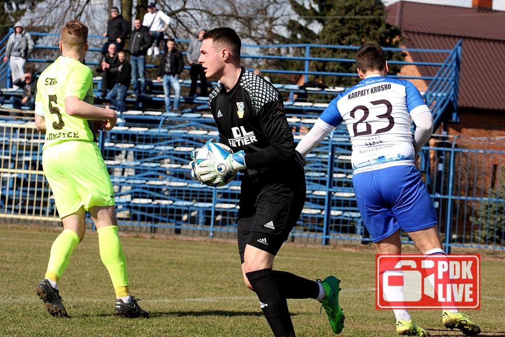 - 9.03.2019, Stadion GOSiR w Gorzycach. Piłkarze Stali Gorzyce pokonali Karpaty Krosno 2-0 w meczu 18. kolejki IV ligi podkarpackiej (fot. Radosław Kuśmierz)