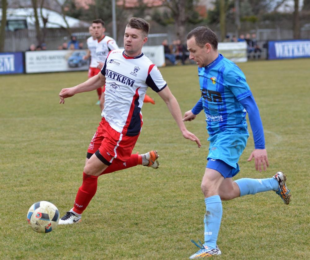 - 10.03.2019, 4 liga podkarpacka: Watkem Korona Rzeszów (białe koszulki) wygrała 2-1 w meczu 18. kolejki z Sokołem Kolbuszowa Dolna.