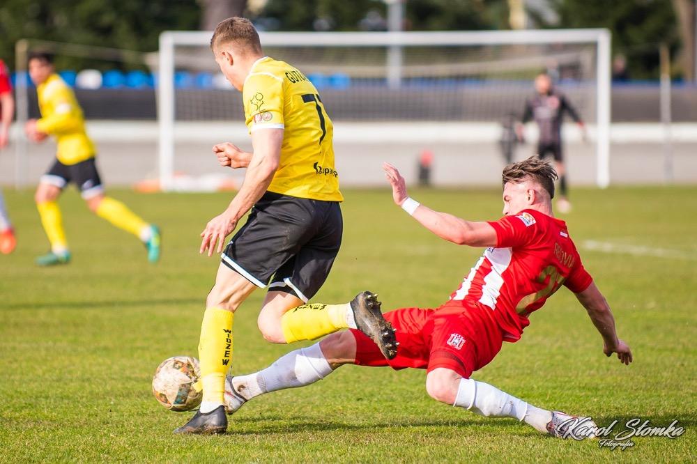 - 16 marca 2019, Stadion Miejski w Rzeszowie. Piłkarze Resovii (biało-czerwone koszulki) zremisowali 1-1 w meczu 2 ligi z faworyzowanym Widzewem Łódź. Gola dla "Pasiaków" jeszcze w pierwszej połowie strzelił Bartłomiej Makowski z rzutu karnego. Wyrównał po przerwie Rafał Wolsztyński (fot. Karol Słomka)
