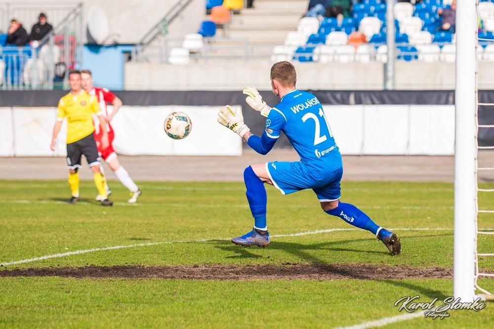 - 16 marca 2019, Stadion Miejski w Rzeszowie. Piłkarze Resovii (biało-czerwone koszulki) zremisowali 1-1 w meczu 2 ligi z faworyzowanym Widzewem Łódź. Gola dla "Pasiaków" jeszcze w pierwszej połowie strzelił Bartłomiej Makowski z rzutu karnego. Wyrównał po przerwie Rafał Wolsztyński (fot. Karol Słomka)