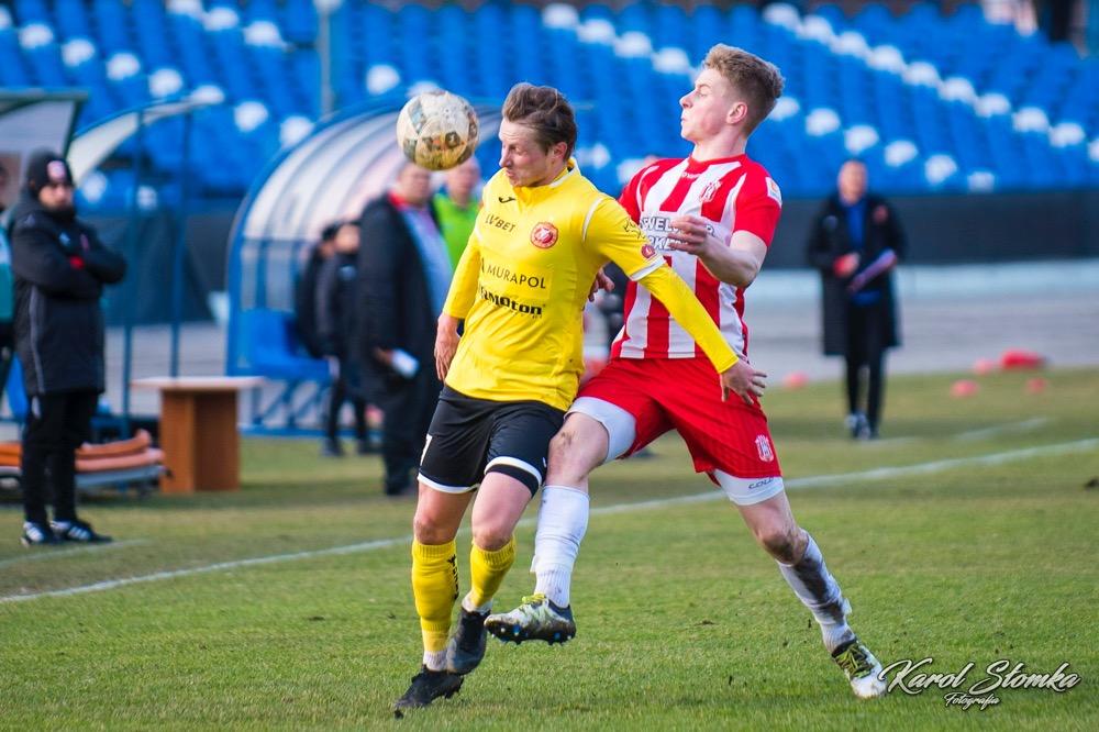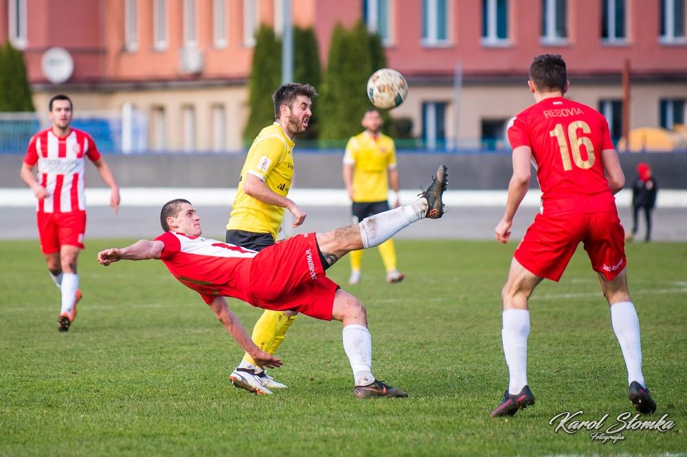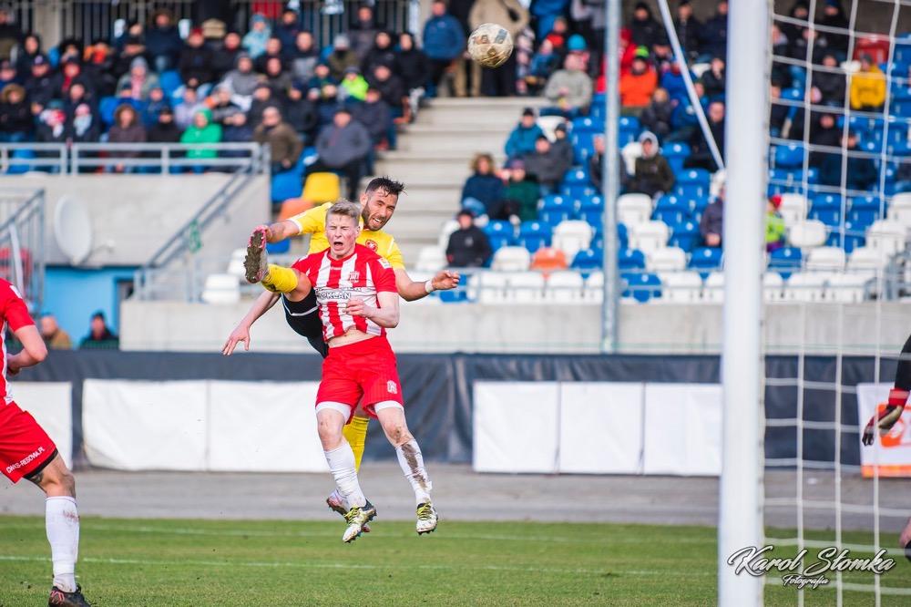 - 16 marca 2019, Stadion Miejski w Rzeszowie. Piłkarze Resovii (biało-czerwone koszulki) zremisowali 1-1 w meczu 2 ligi z faworyzowanym Widzewem Łódź. Gola dla "Pasiaków" jeszcze w pierwszej połowie strzelił Bartłomiej Makowski z rzutu karnego. Wyrównał po przerwie Rafał Wolsztyński (fot. Karol Słomka)